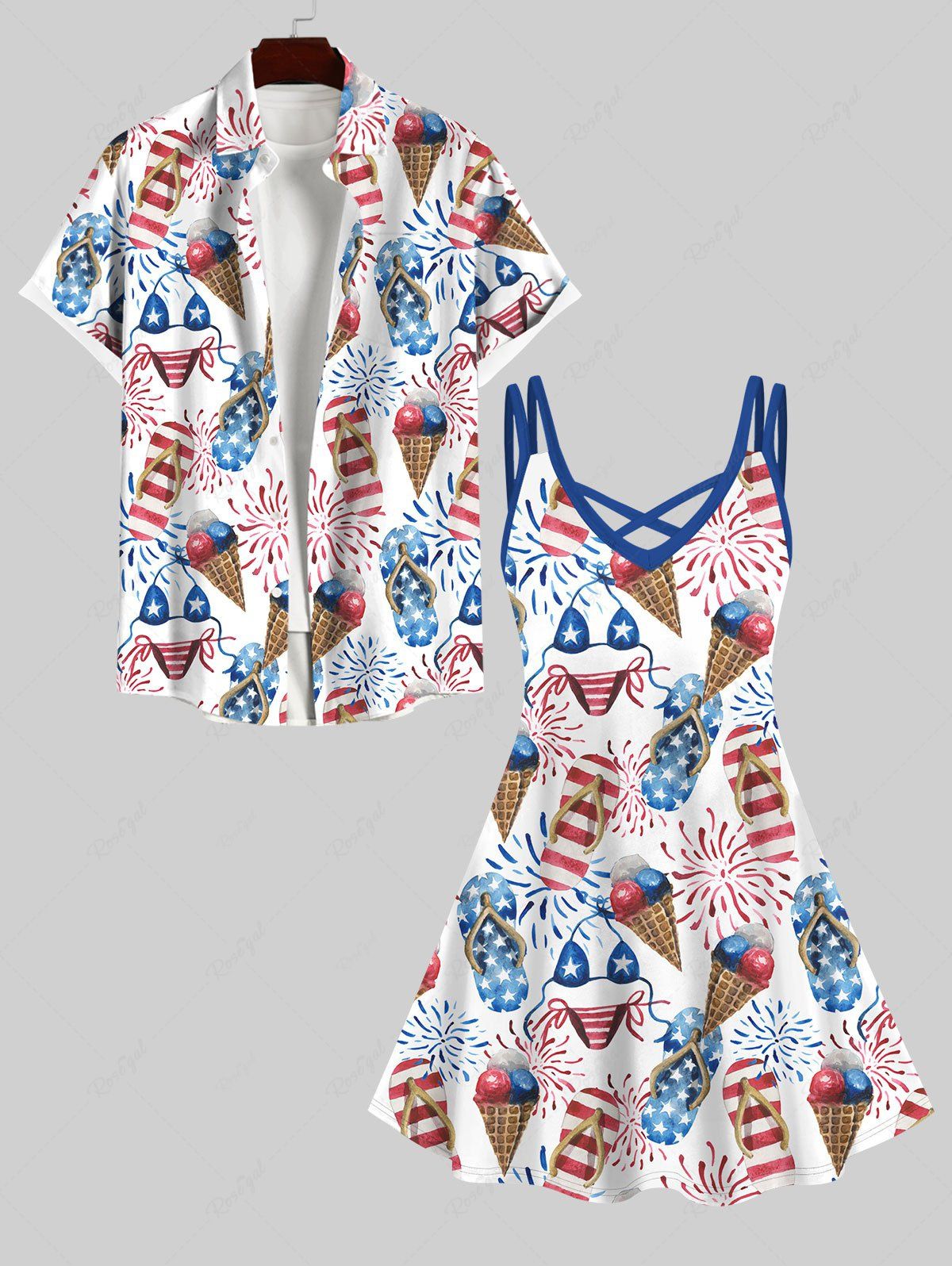 Patriotic American Flag Fireworks Print Plus Size Matching Outfit For Couples