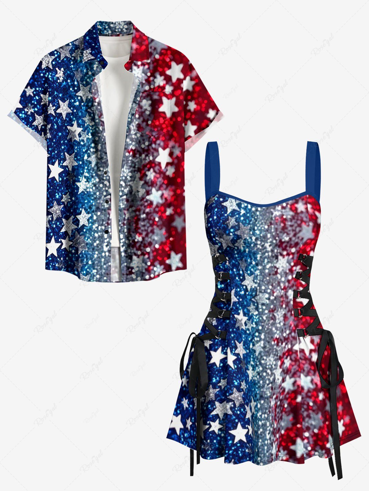 Glitter Sequins Patriotic American Flag Print Matching Outfit For Couples