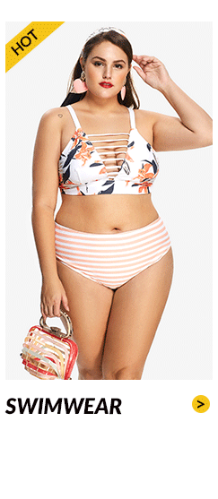 Strappy Criss Cross Floral Stripes Plus Size Bikini Set - WHITE - L