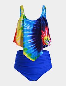 Plus Size Overlay Tie Dye High Waist Tankini Swimsuit - MULTI-B - 1X