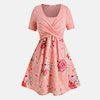 Plus Size Floral Print Crossover A Line Dress - PINK - L