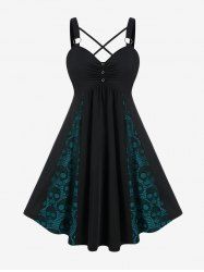 Plus Size Skull Fishnet Panel Ruched Crisscross O-Ring Buckle Dress - 3x | Us 22-24