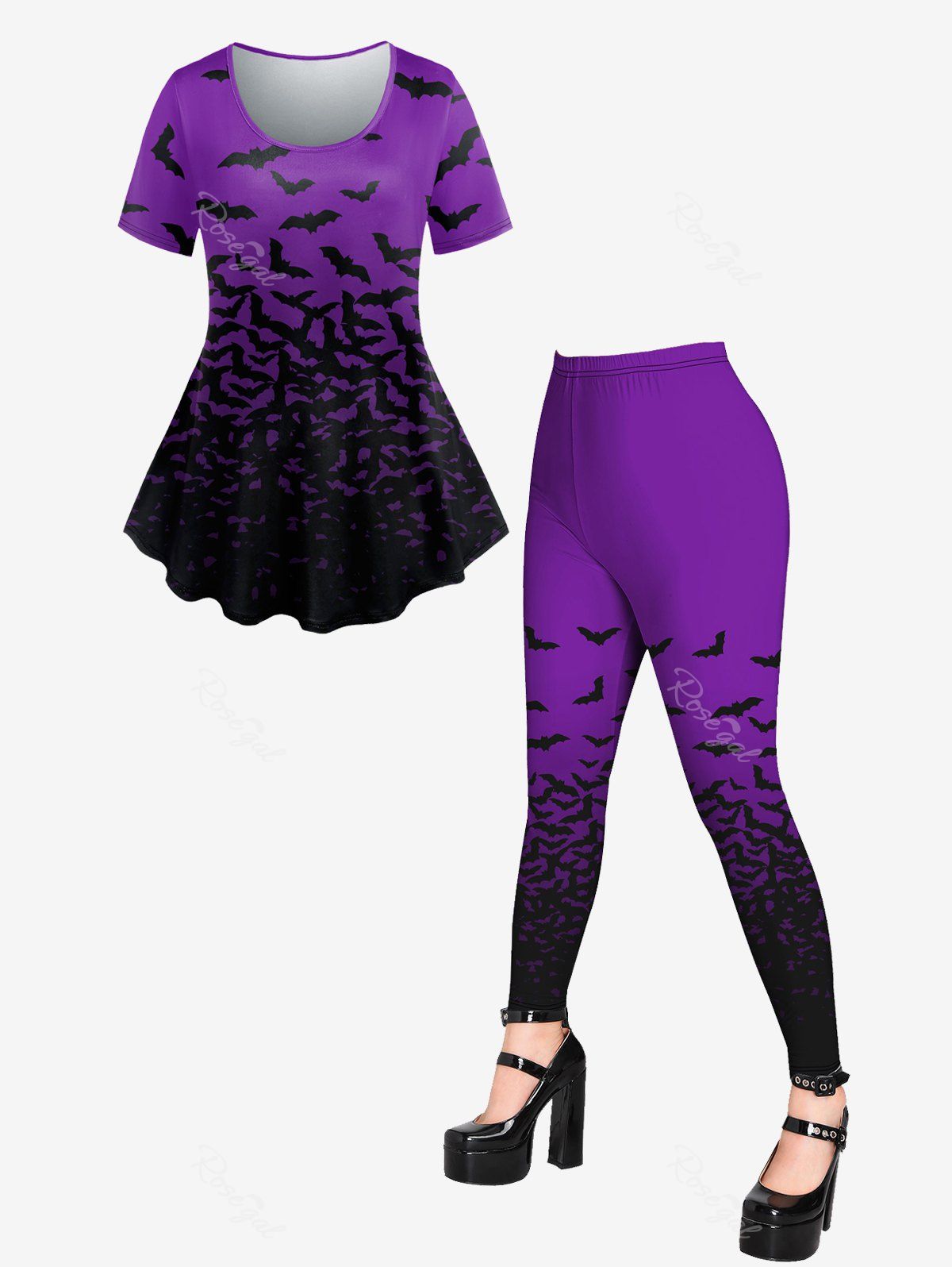 Skull Printed Gothic Tee and Skull Printed Skinny Leggings Plus Size Summer Outfit