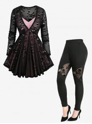 Gothic Skull Skeleton Print T-shirt and High Rise Skull Print Skinny Leggings Plus Size Outfit