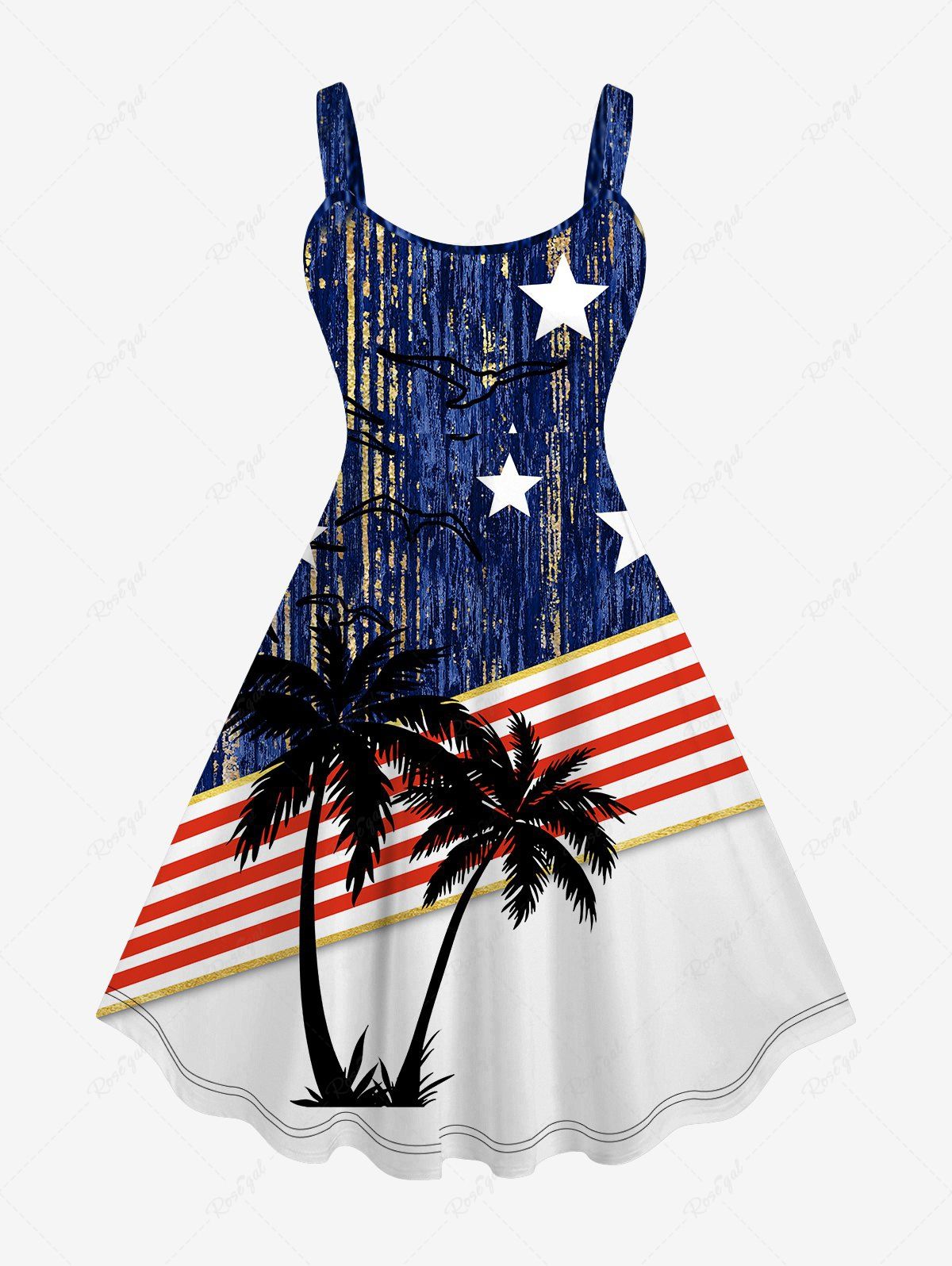 Plus Size Patriotic American Flag Coconut Tree Star Print Hawaii Tank Dress - 4x
