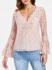 V Neck Flare Sleeve Lace Top - Xl