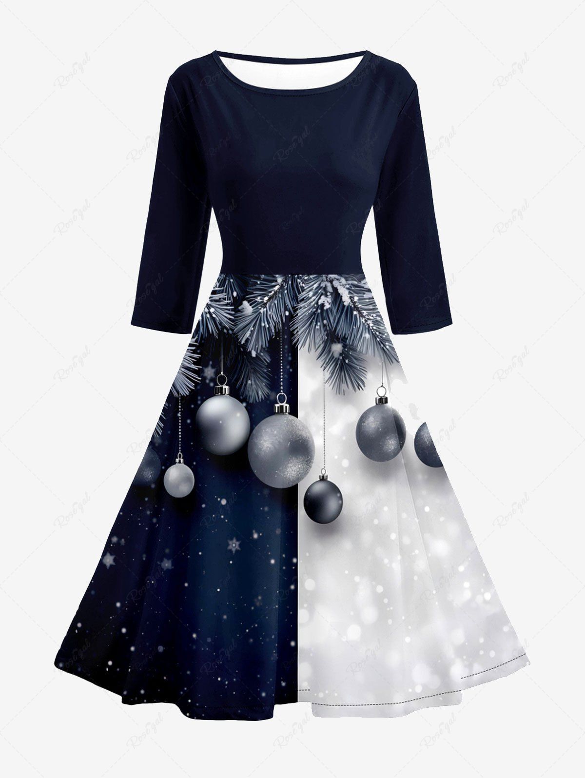 Christmas Ball Snowflake Colorblock Printed Midi 50's Vintage A Line Dress - L