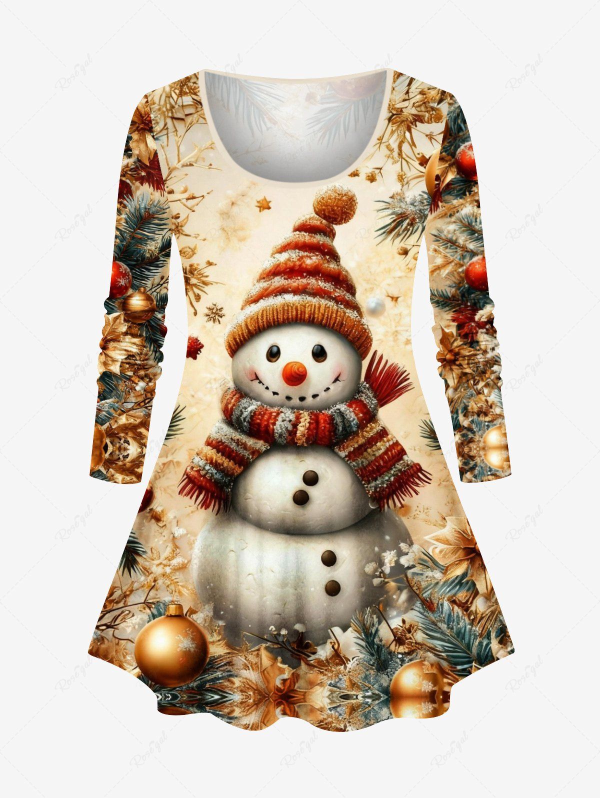 Plus Size Christmas Ball Flowers Snowman Print Long SleevesT-shirt - 6x
