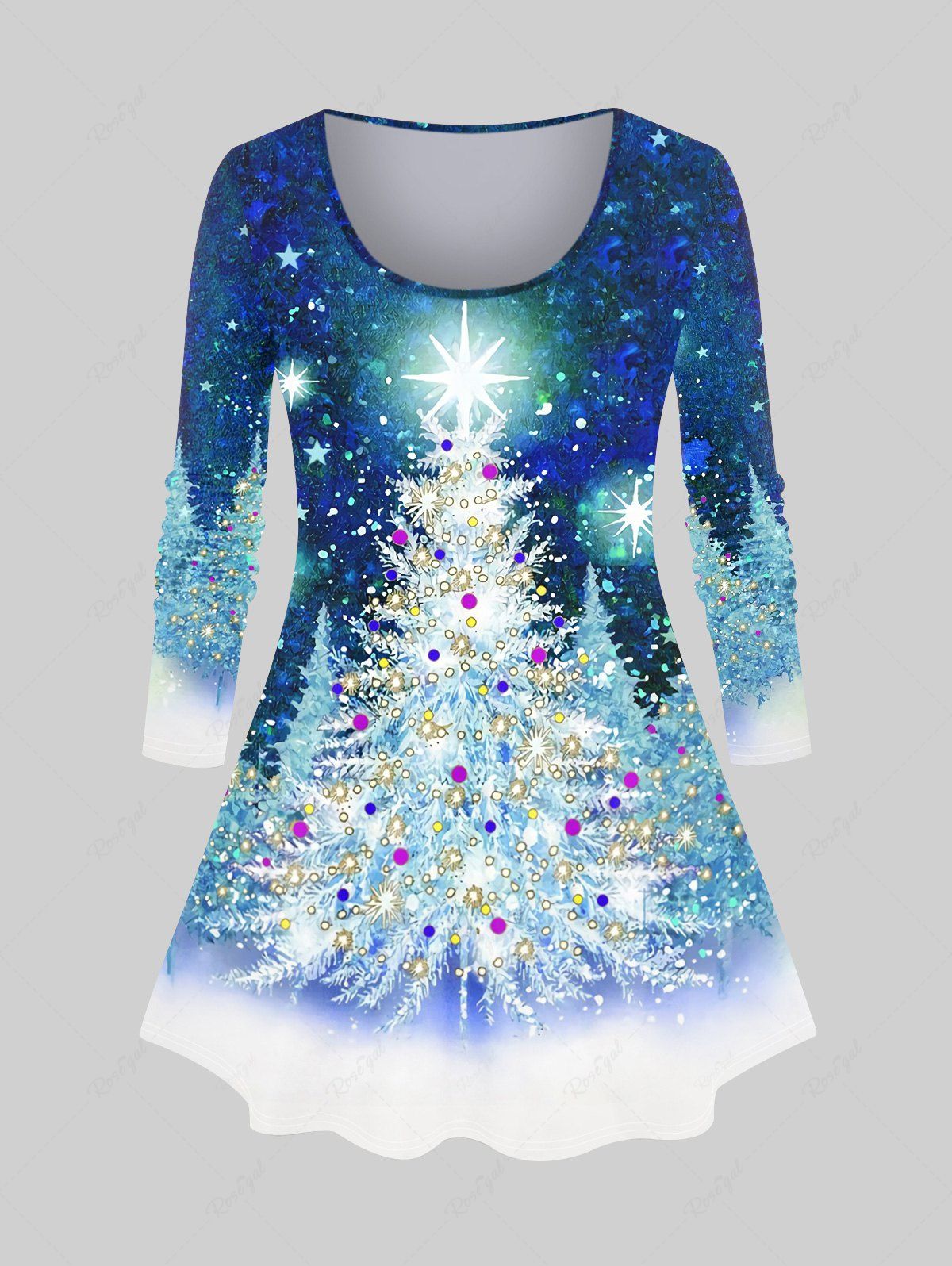 Plus Size Christmas Tree Star Galaxy Glitter Print T-shirt - 2x