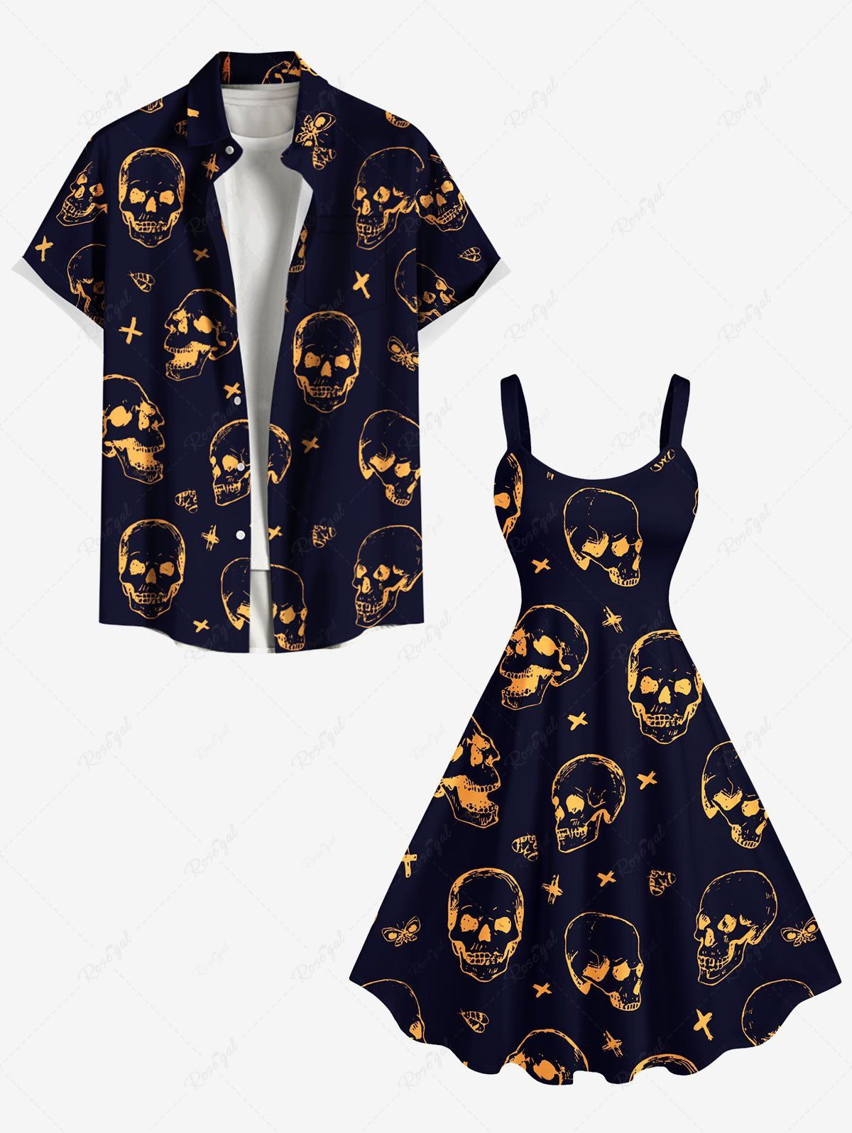 Skulls Rose Flowers Print Plus Size Matching Halloween Outfit For Couples