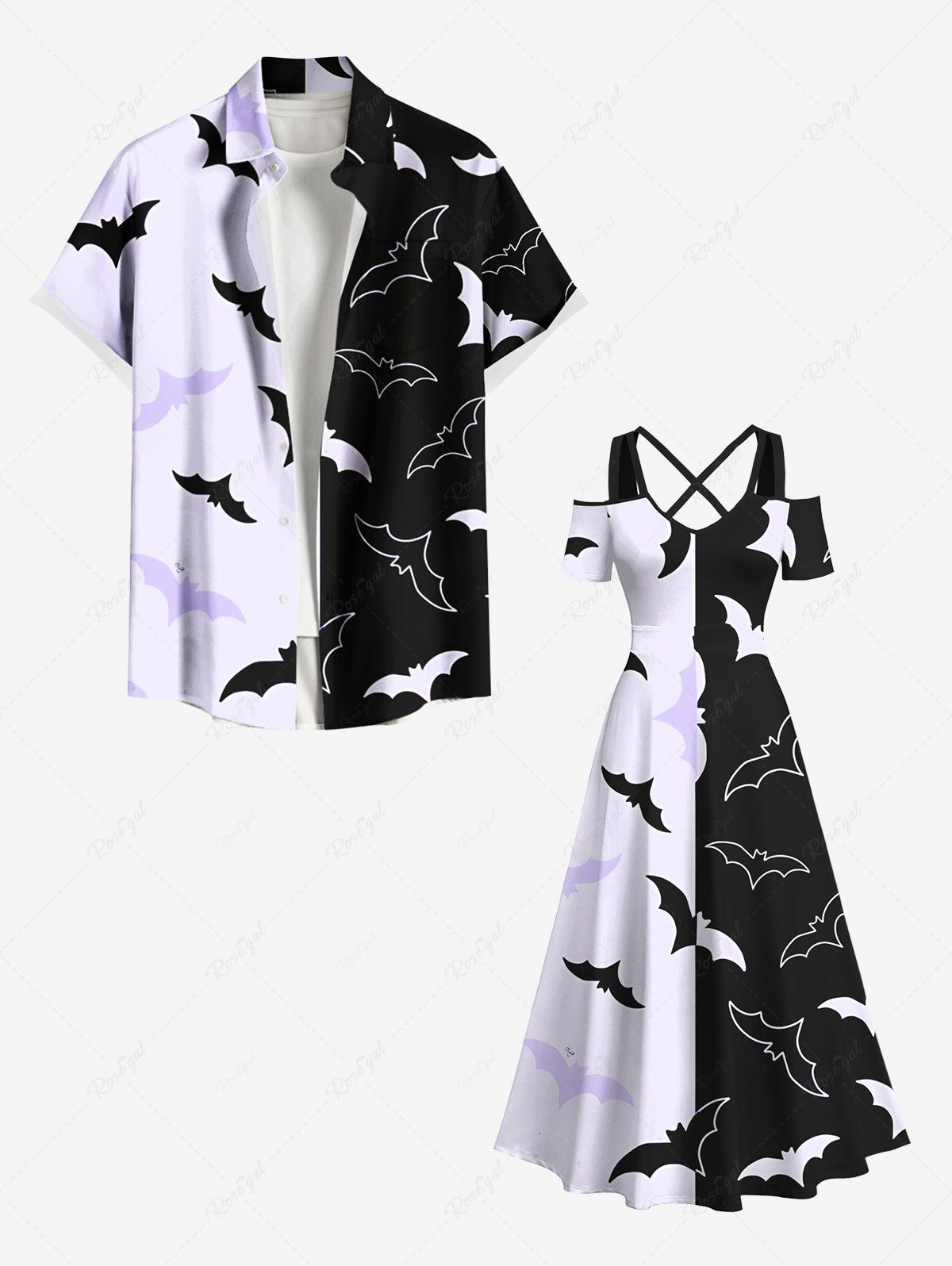 Halloween Two Tone Bat Print Plus Size Matching Outfit For Couples