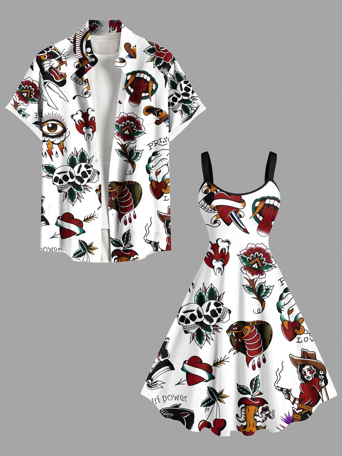 Skull Flower Heart Snake Cherry Print Plus Size Matching Outfit For Couples