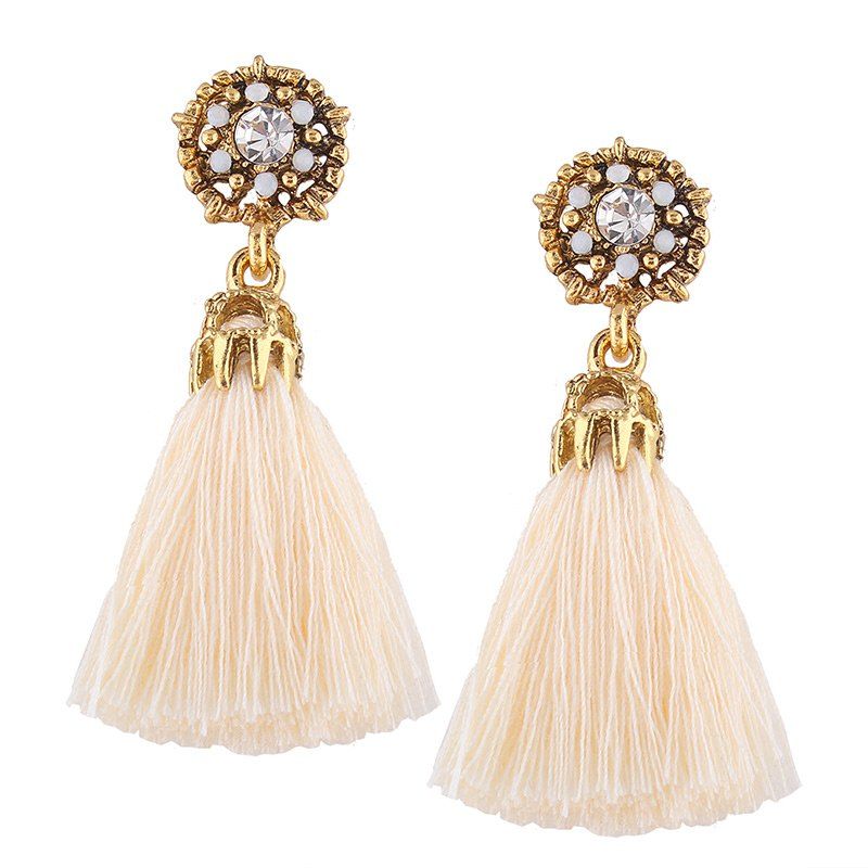 Trendy Rhinestone Alloy Flower Tassel Earrings