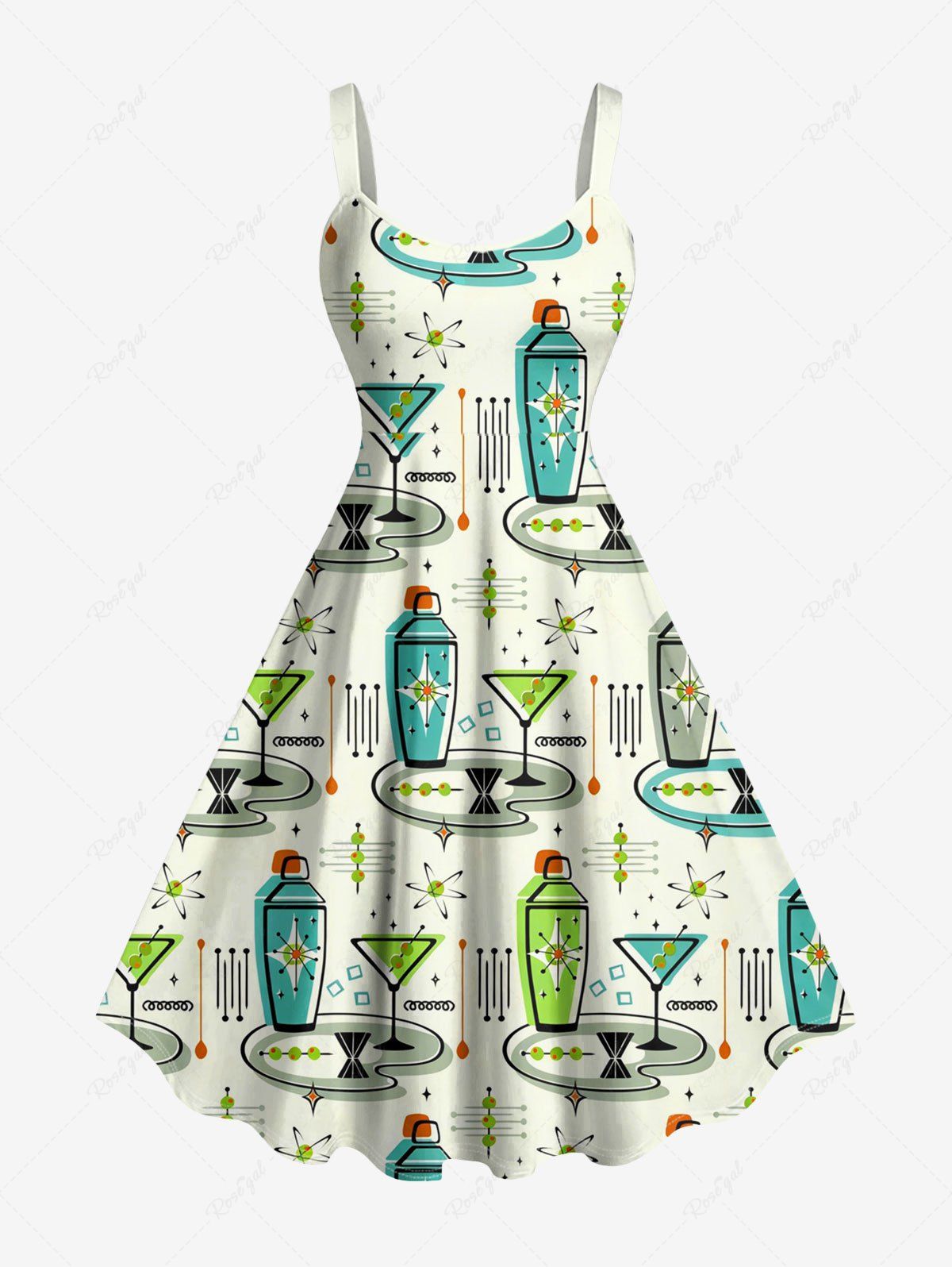 Plus Size Bottle Fruit Juice Print Hawaii Tank Dress - 4x