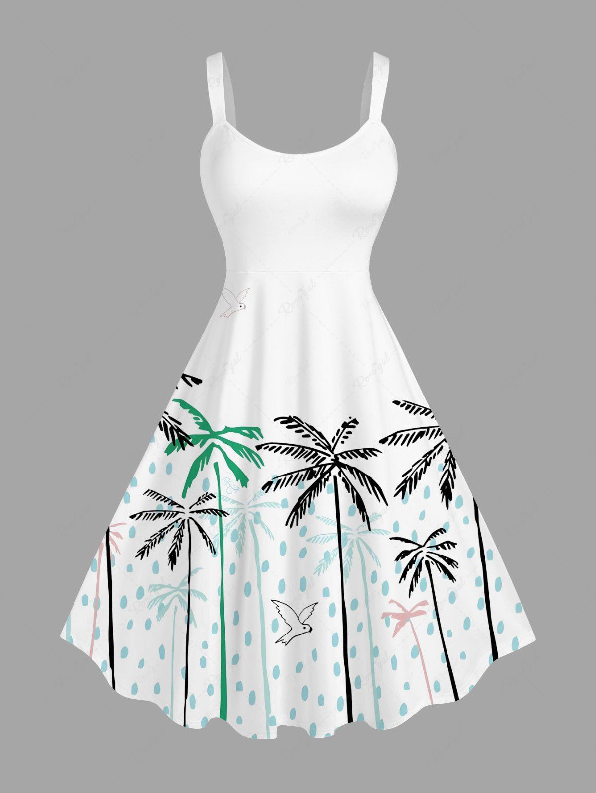 Plus Size Coconut Tree Bird Rain Drop Print Hawaii Tank Dress - M