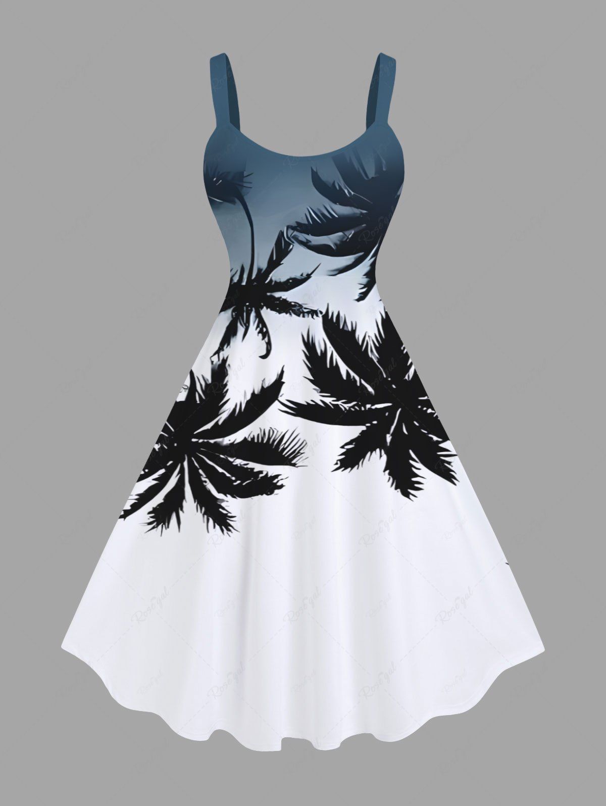 Plus Size Coconut Tree Ombre Print Hawaii A Line Tank Dress - 2x