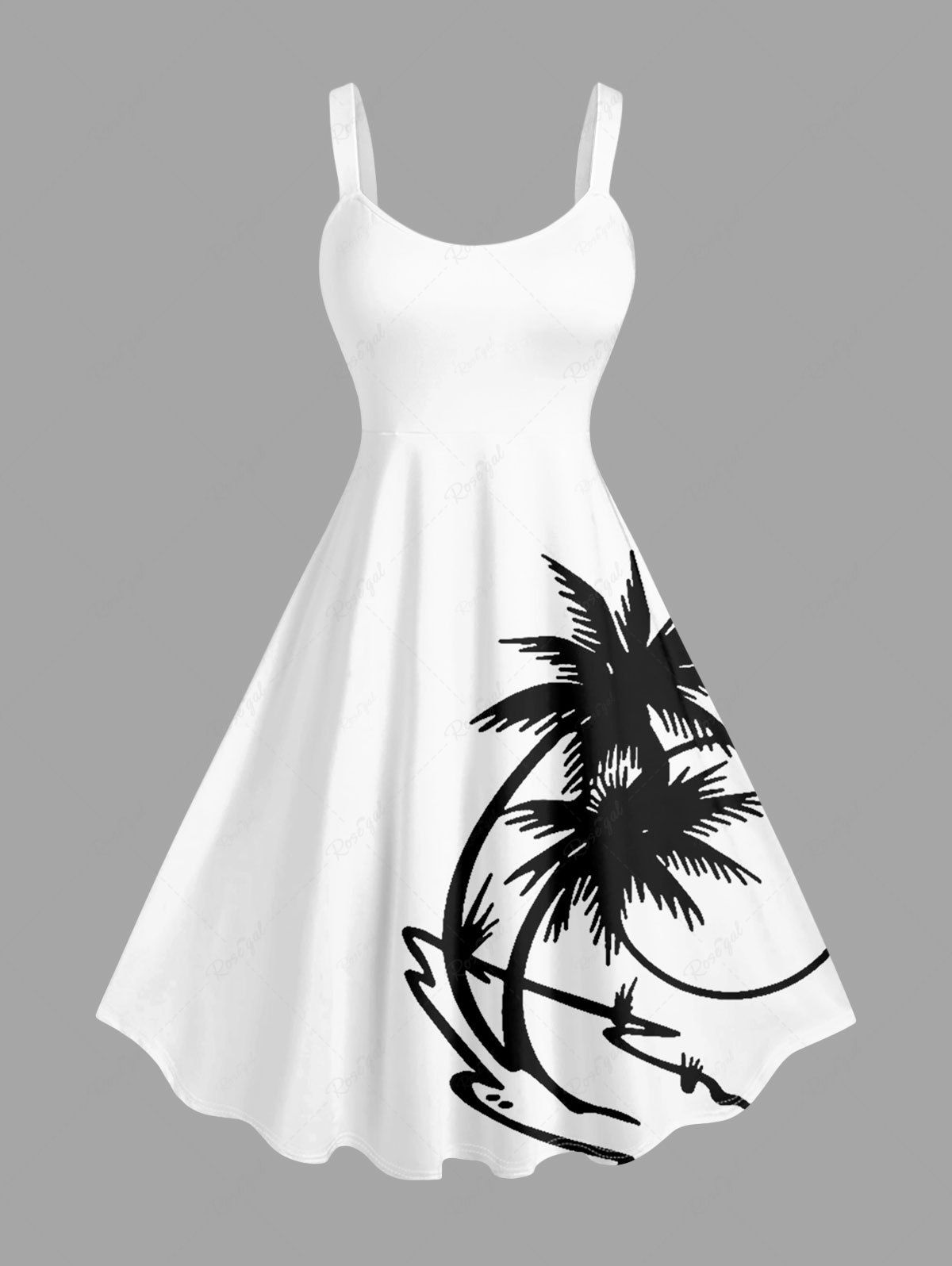 Plus Size Coconut Tree Print Hawaii Tank Dress - L
