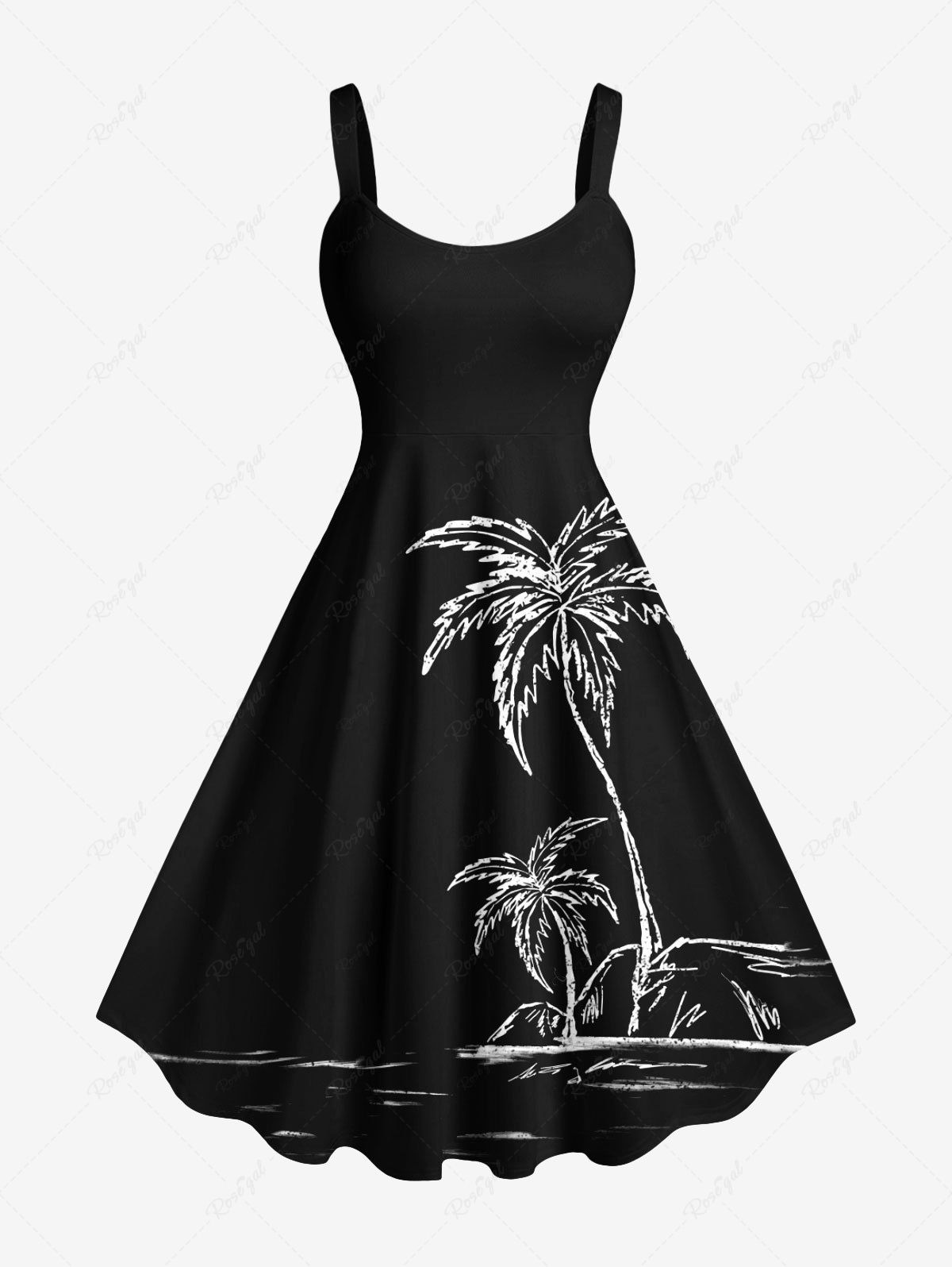 Plus Size Coconut Tree Seascape Print Hawaii Tank Dress - S