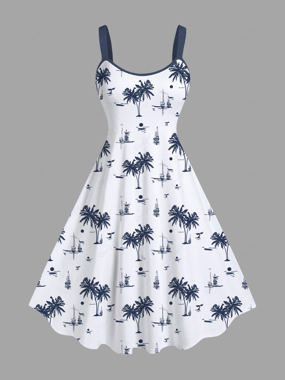 Plus Size Coconut Tree Sun Sailboat Print Hawaii Tank Dress - Xxs