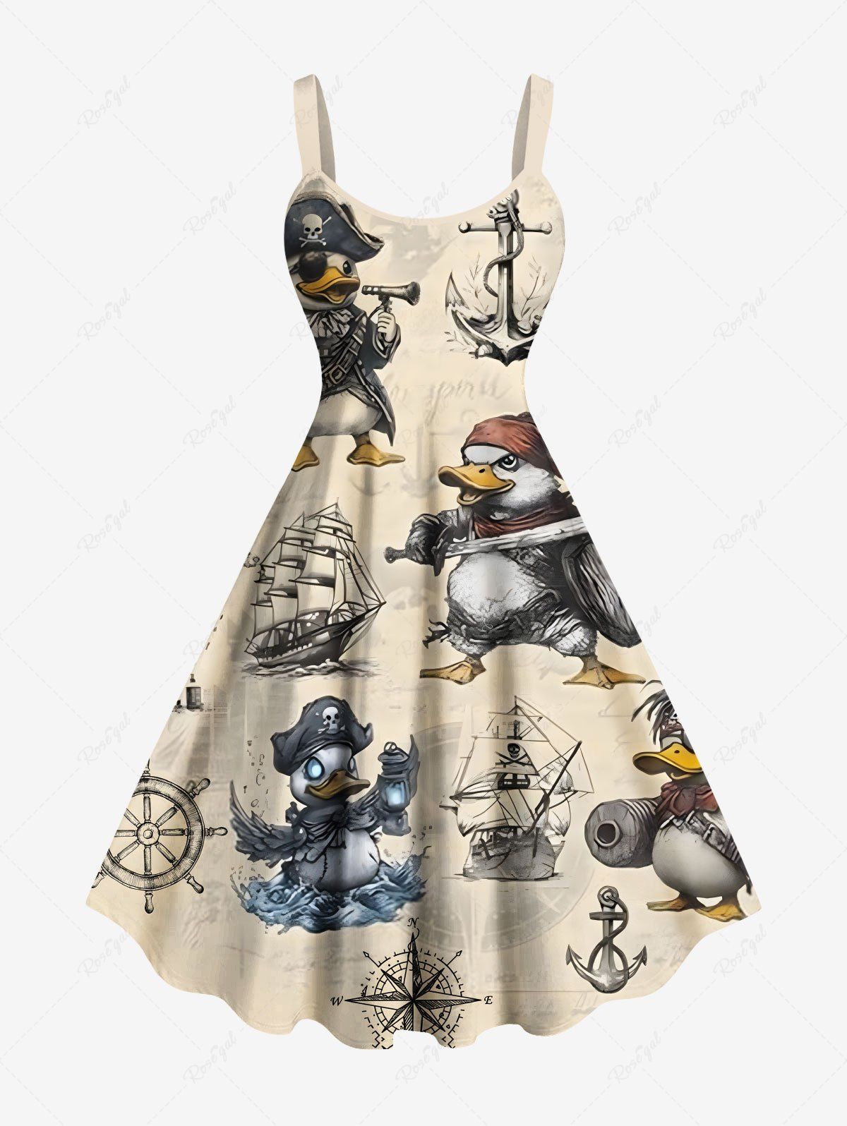 Plus Size Duck Pirate Anchor Ship Rudder Print Hawaii Tank Dress - 1x