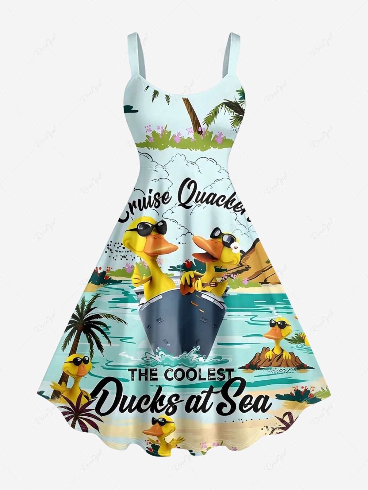 Plus Size Duck Sea Sun Coconut Tree Cloud Print Hawaii Tank Dress - 6x