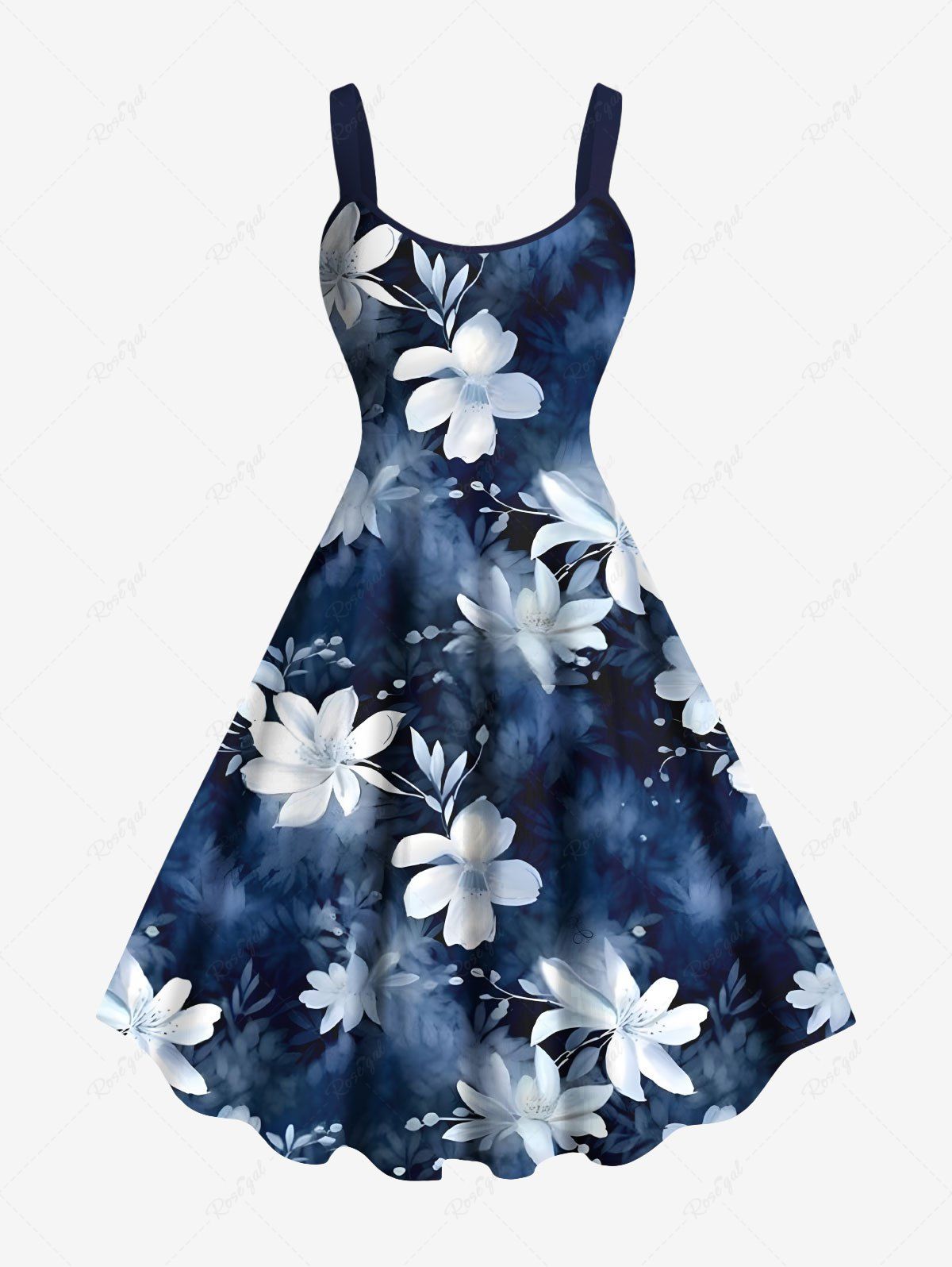 Plus Size Flower Ombre Print Hawaii A Line Tank Dress - 1x