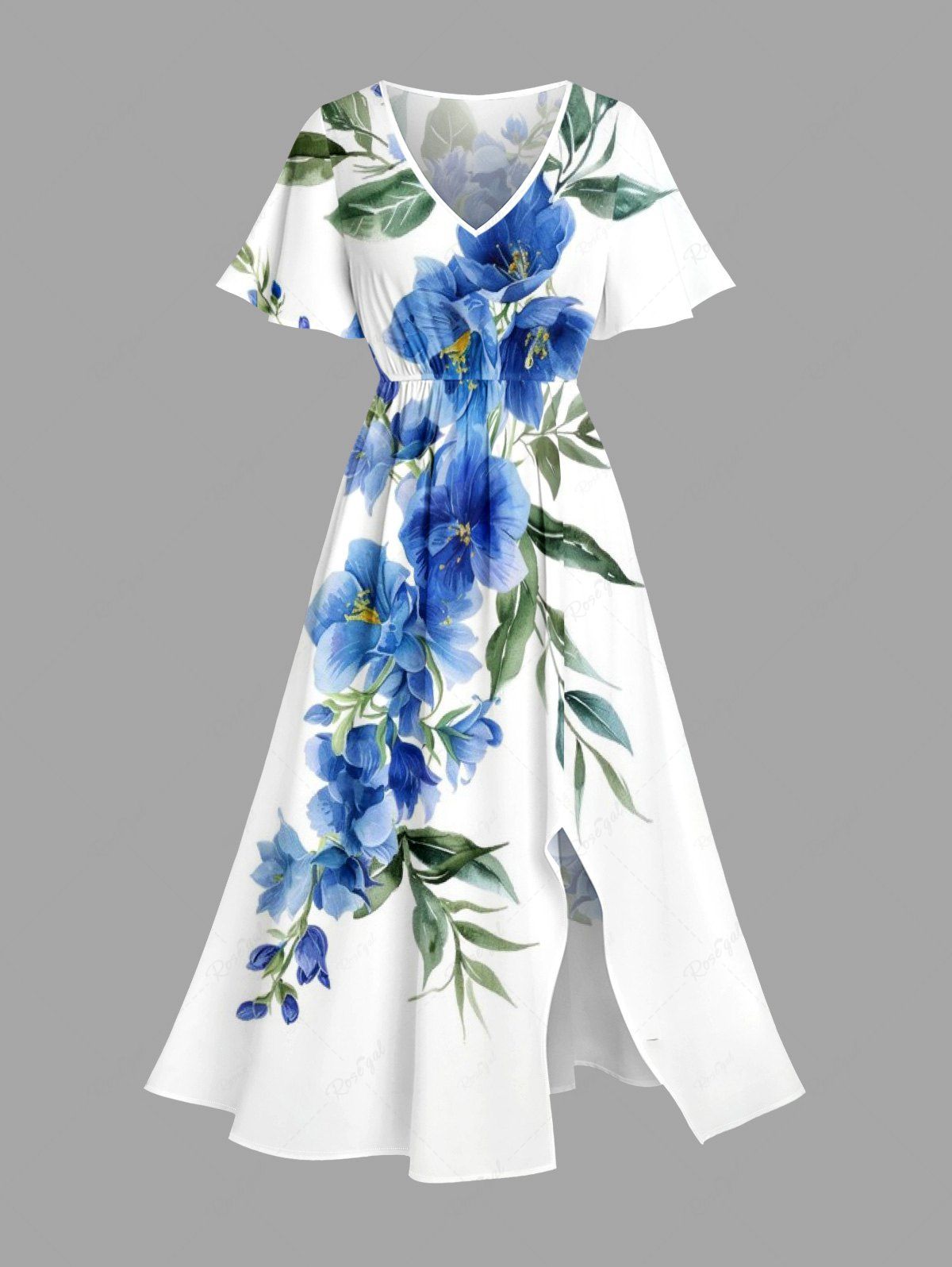 Plus Size Flowers Leaf Print Split Hawaii Midi Dress - 1x