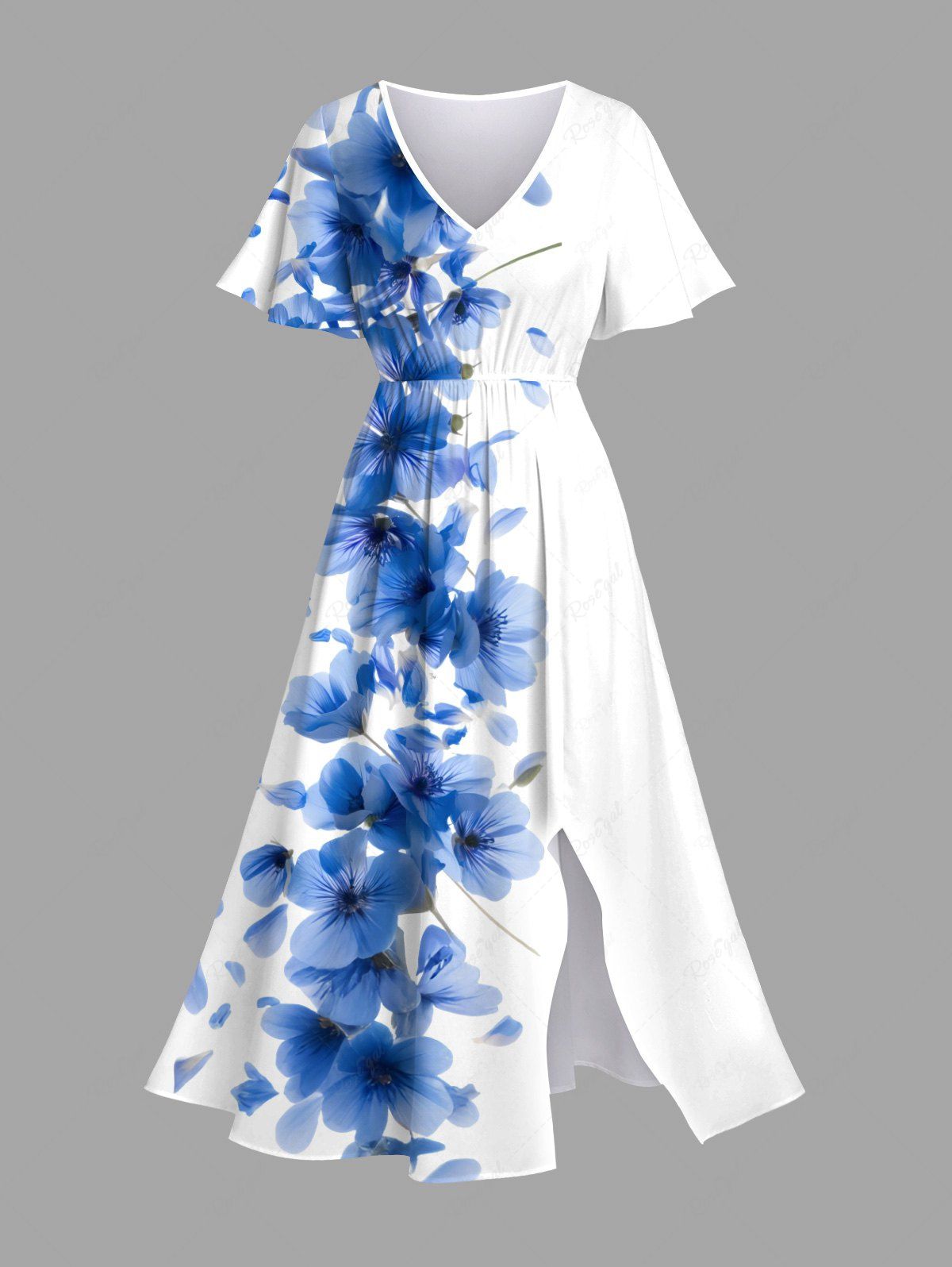 Plus Size Flowers Print Split Hawaii Midi Dress - 6x