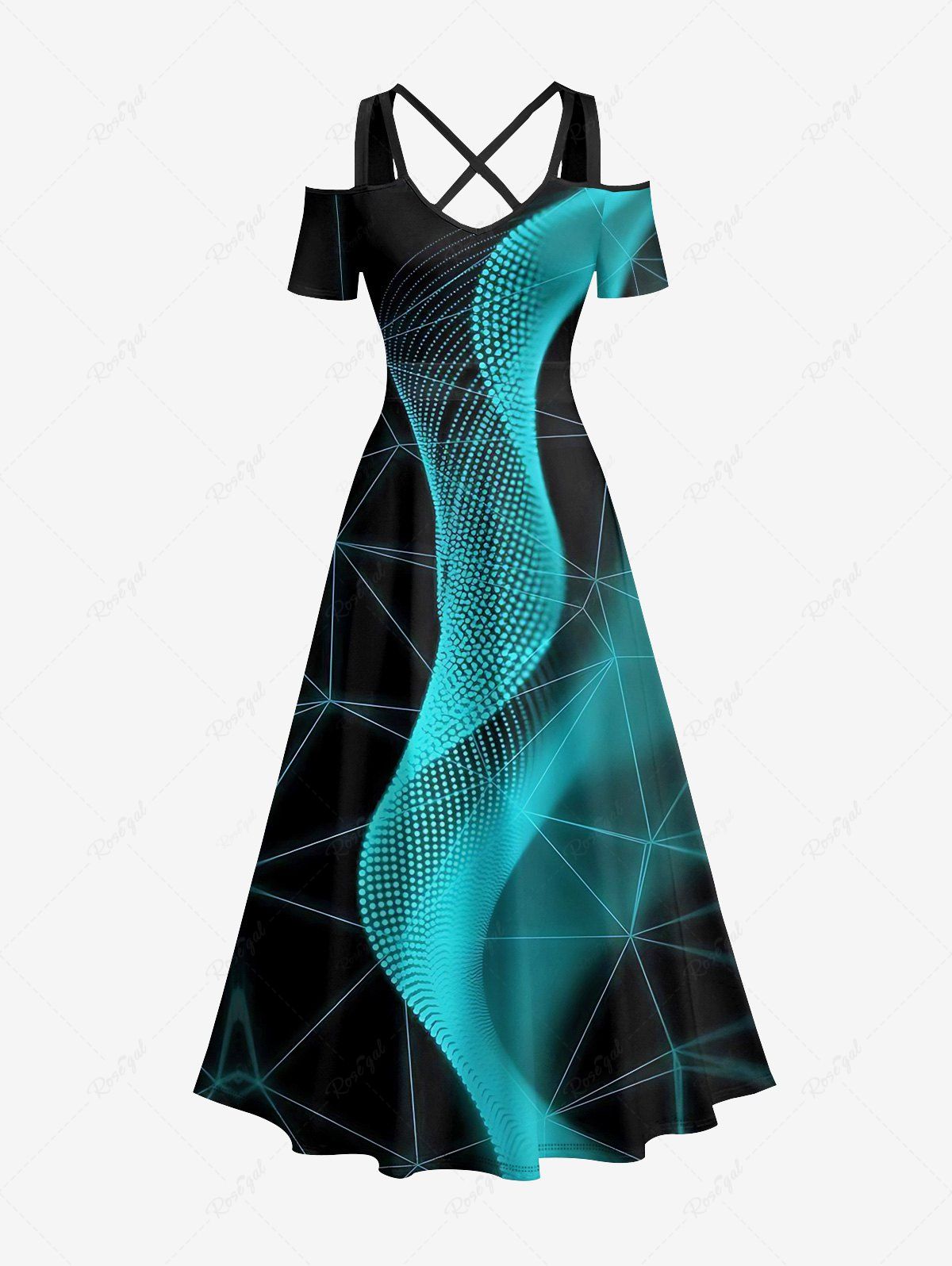 Plus Size Ombre Lightwave Print Hawaii Cold Shoulder Crisscross A Line Maxi Dress - 4x