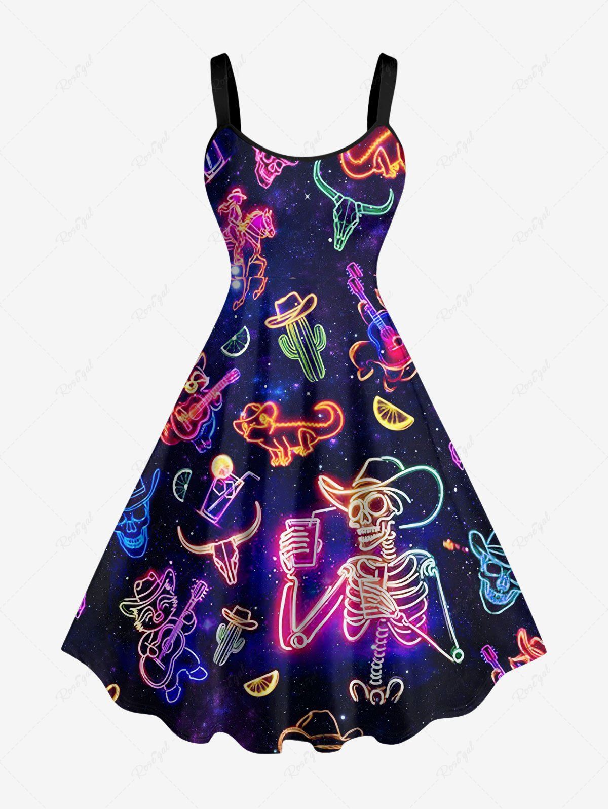 Plus Size Skull Skeleton Fruit Juice Animal Guitar Print Hawaii Tank Dress - Xxs