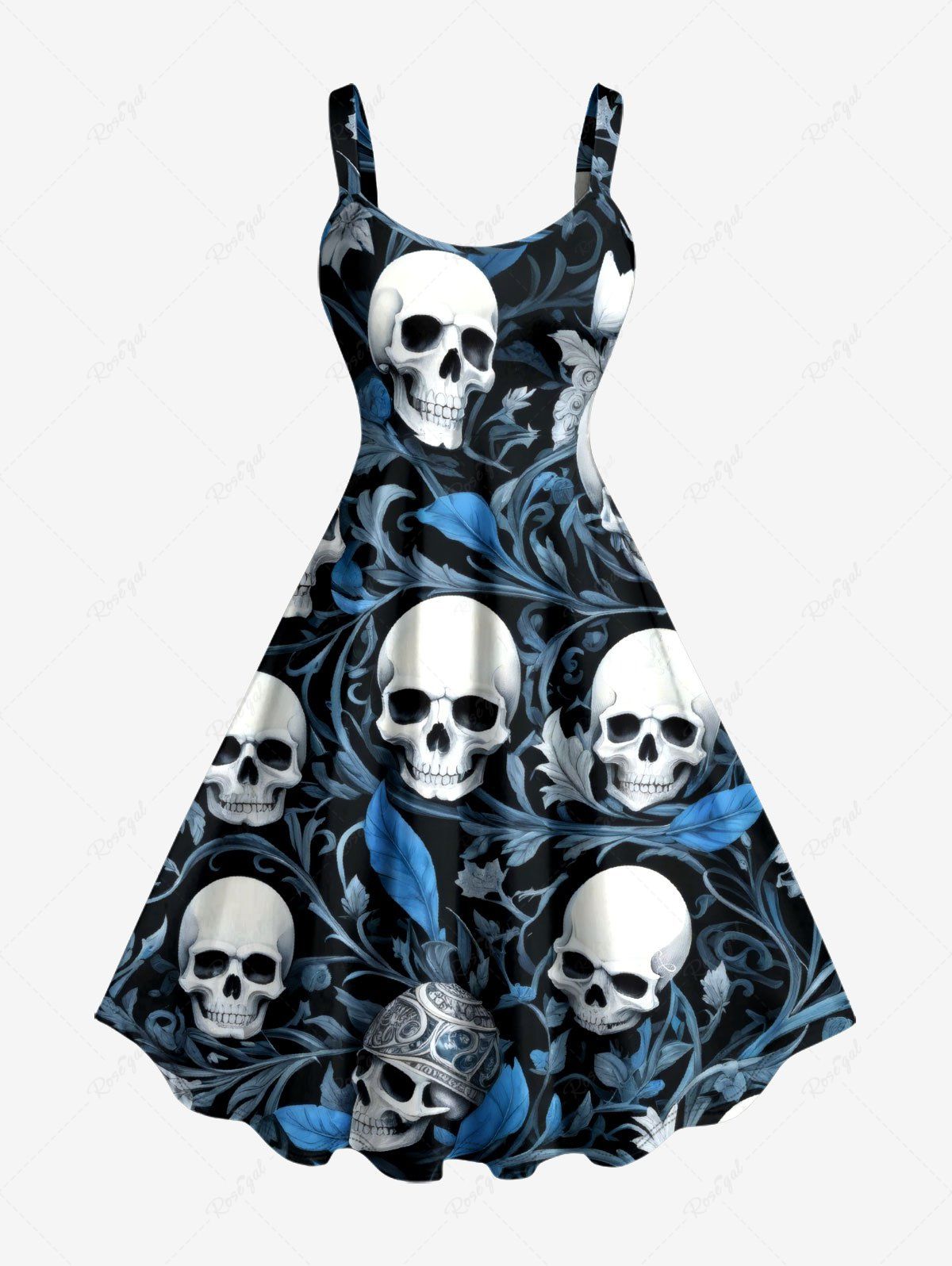 Plus Size Skulls Flower Leaf Print Hawaii Tank Dress - M