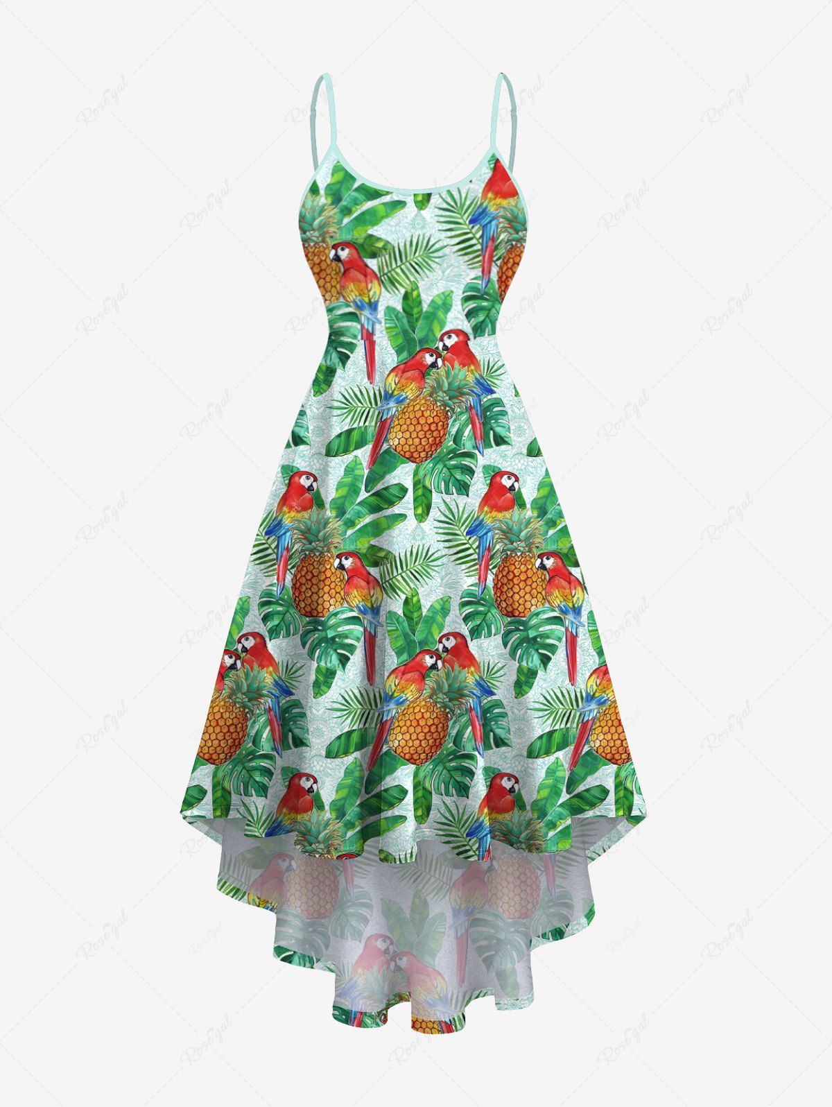 Plus Size Tropical Leaves Pineapple Parrot Print Hawaii High Low Asymmetric Cami Dress - 4x