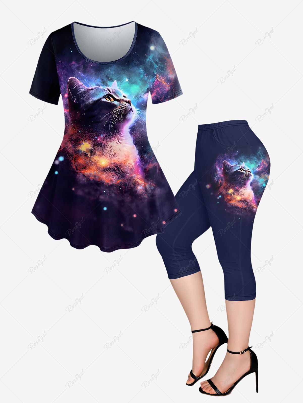 Butterfly Galaxy T-shirt and Leggings Plus Size Summer Outfit