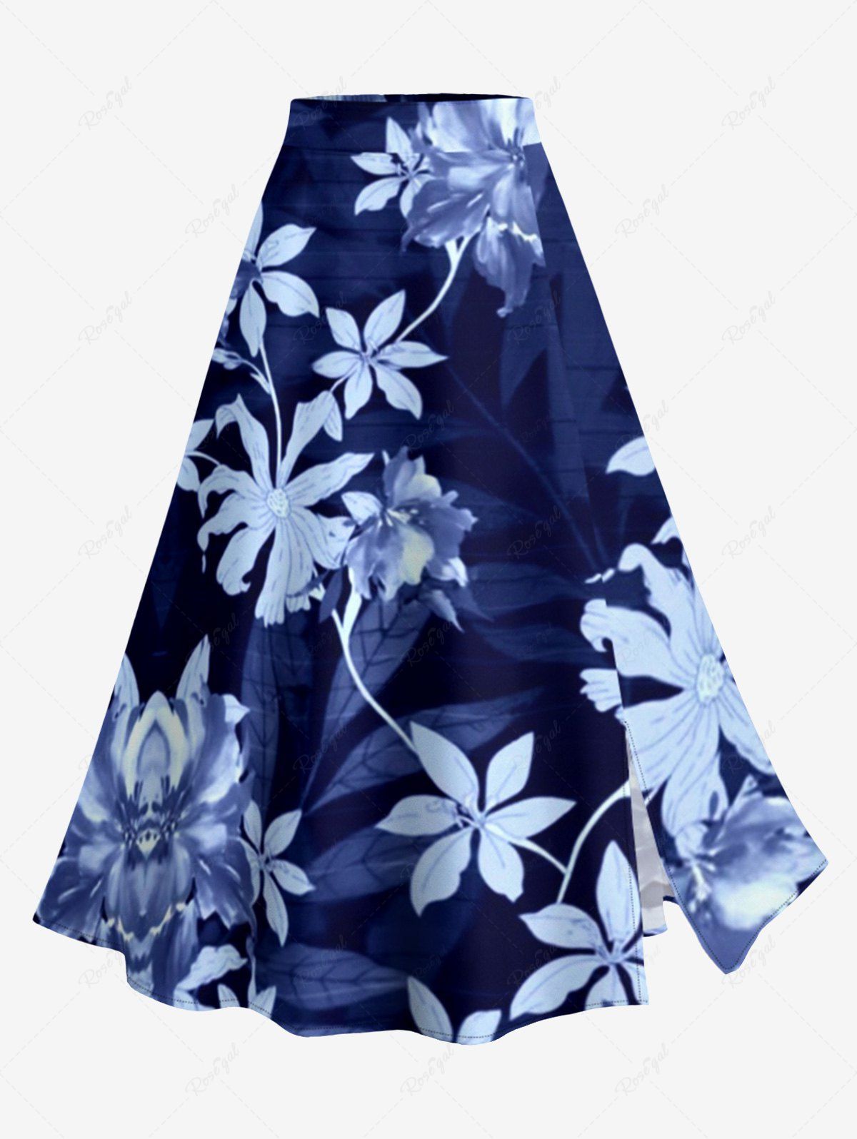 Plus Size Flower Leaf Branch Print Hawaii Split A Line Skirt - 5x