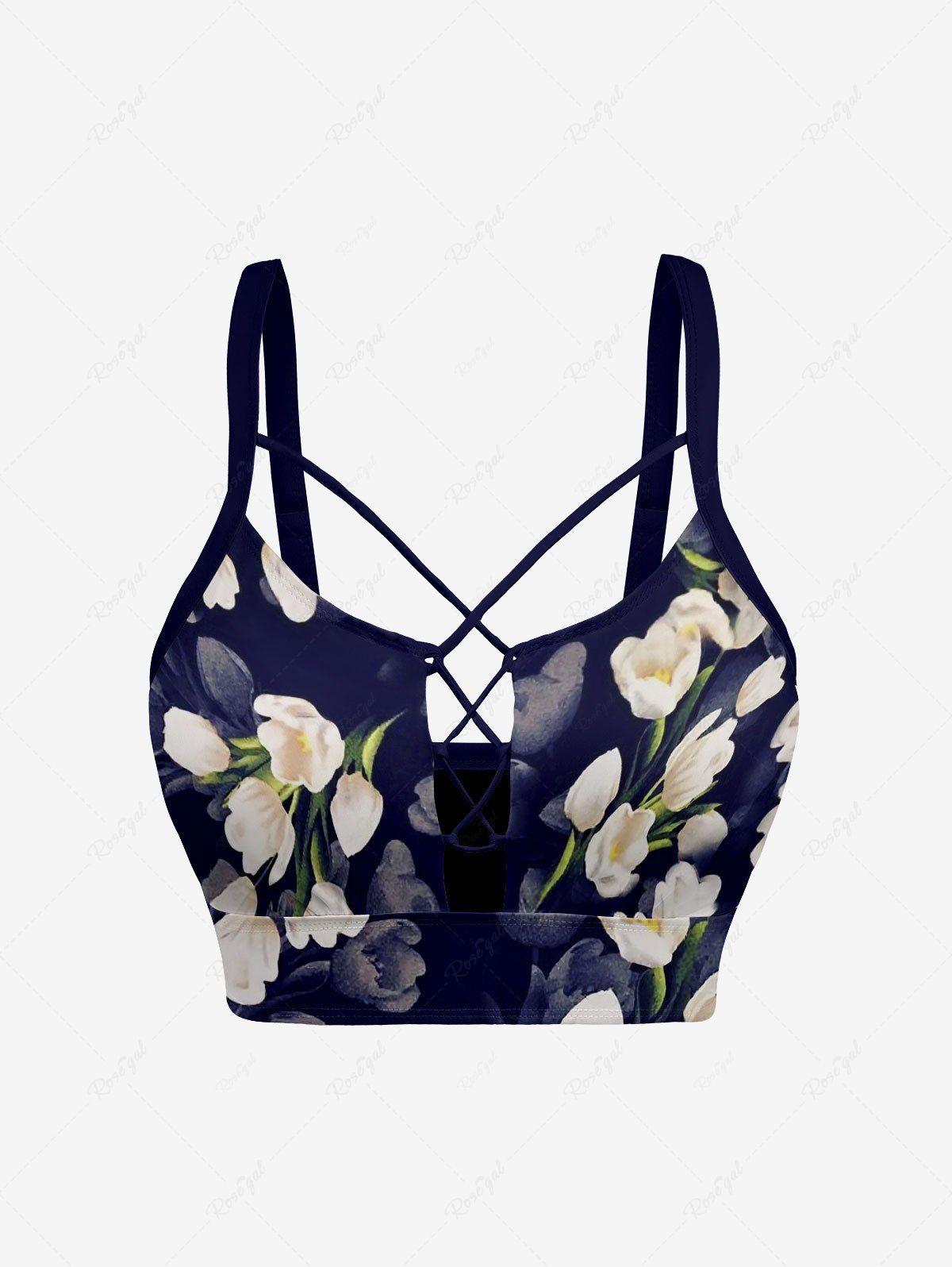 Ombre Flower Print Hawaii Lace Up Tankini Top(Adjustable Shoulder Strap) - 4x
