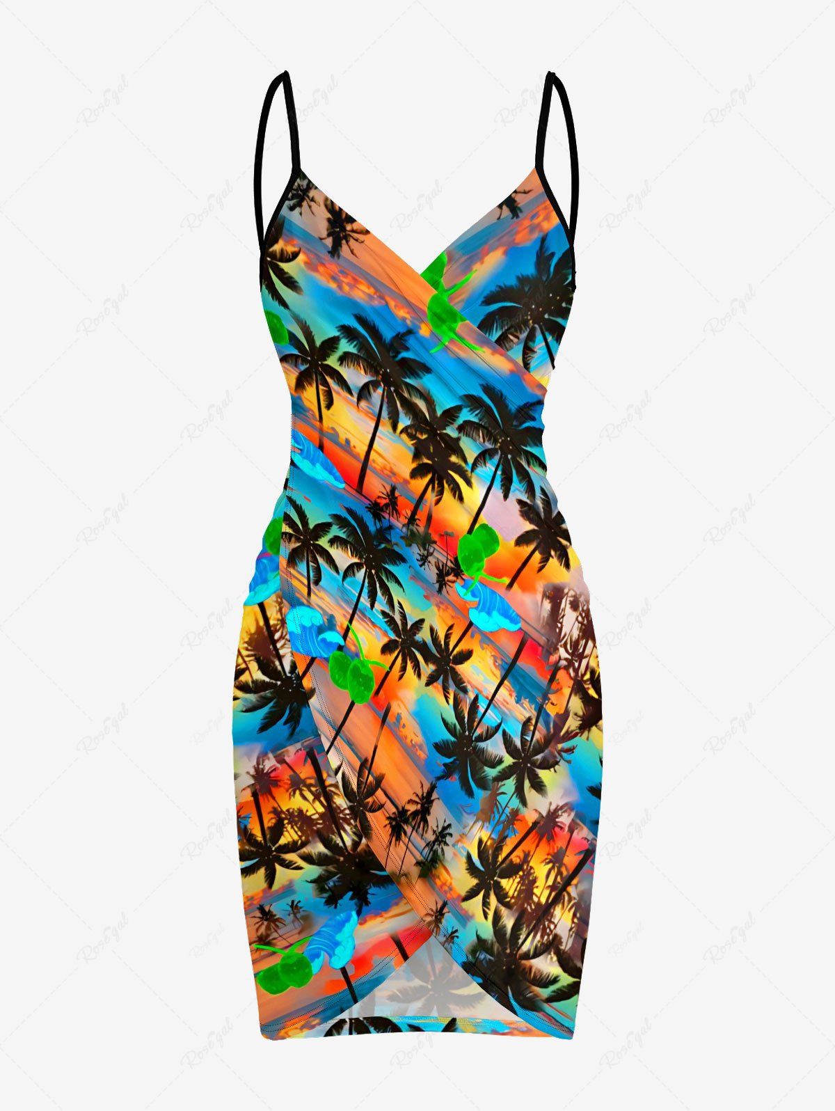 Plus Size Coconut Tree Cloud Ombre Sunset Sky Print Hawaii Covertible Beach Cover Up - M