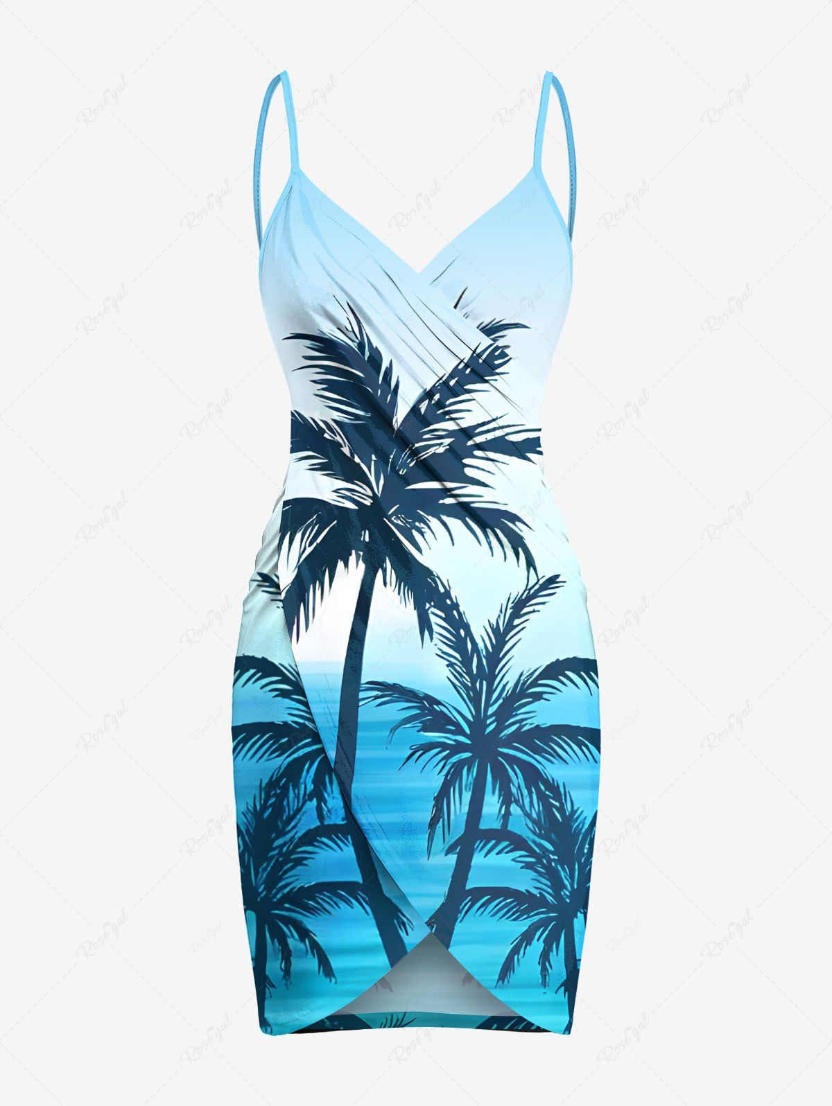 Plus Size Coconut Tree Ombre Colorblock Sea Bird Print Convertible Hawaii Beach Cover - 3x