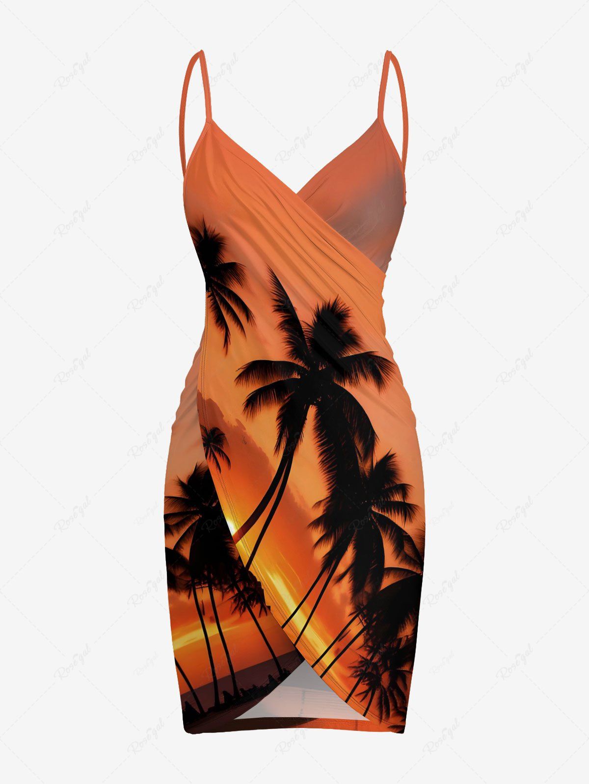 Plus Size Coconut Tree Ombre Dusk Sunset Print Hawaii Convertible Beach Cover Up - M