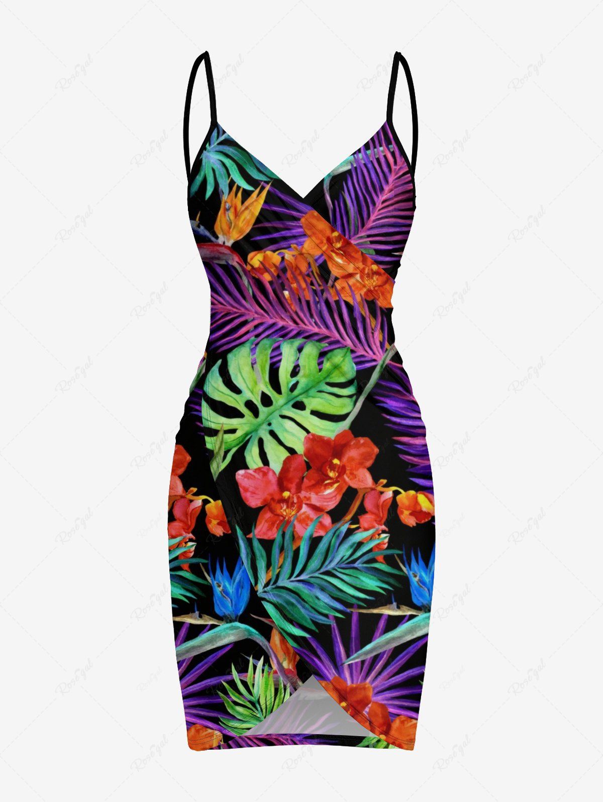Tropical Leaf Flower Print Hawaii Convertible Beach Cover Up - S