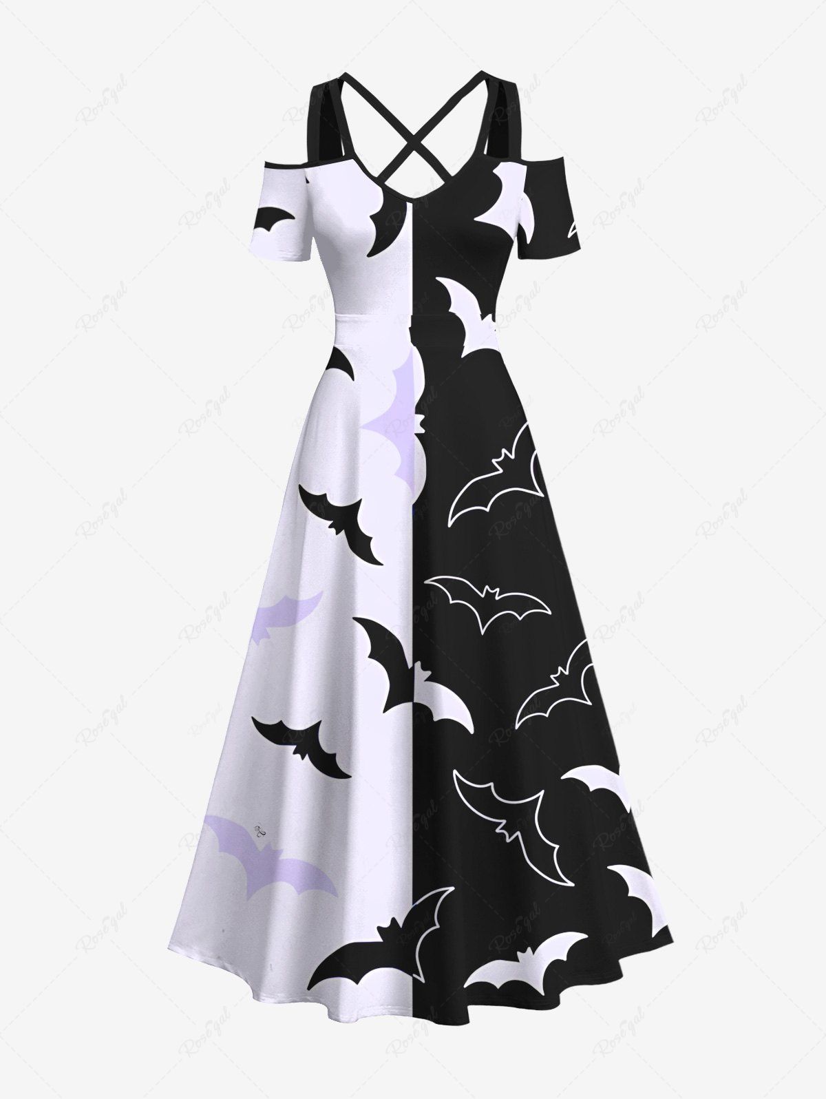 Plus Size Two Tone Bat Print Halloween Cold Shoulder Crisscross A Line Maxi Dress - Xs
