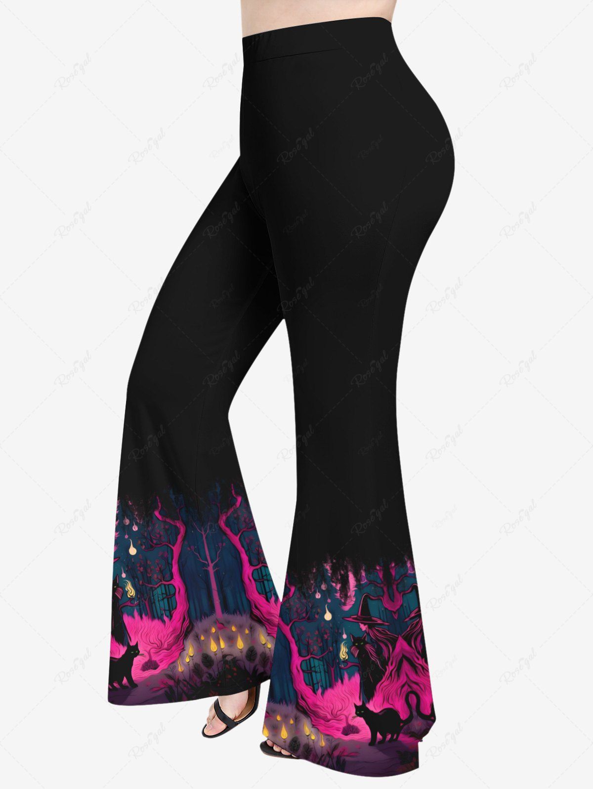 Plus Size Wizard Cat Tree Fire Flame Print Halloween Flare Pants - Xs