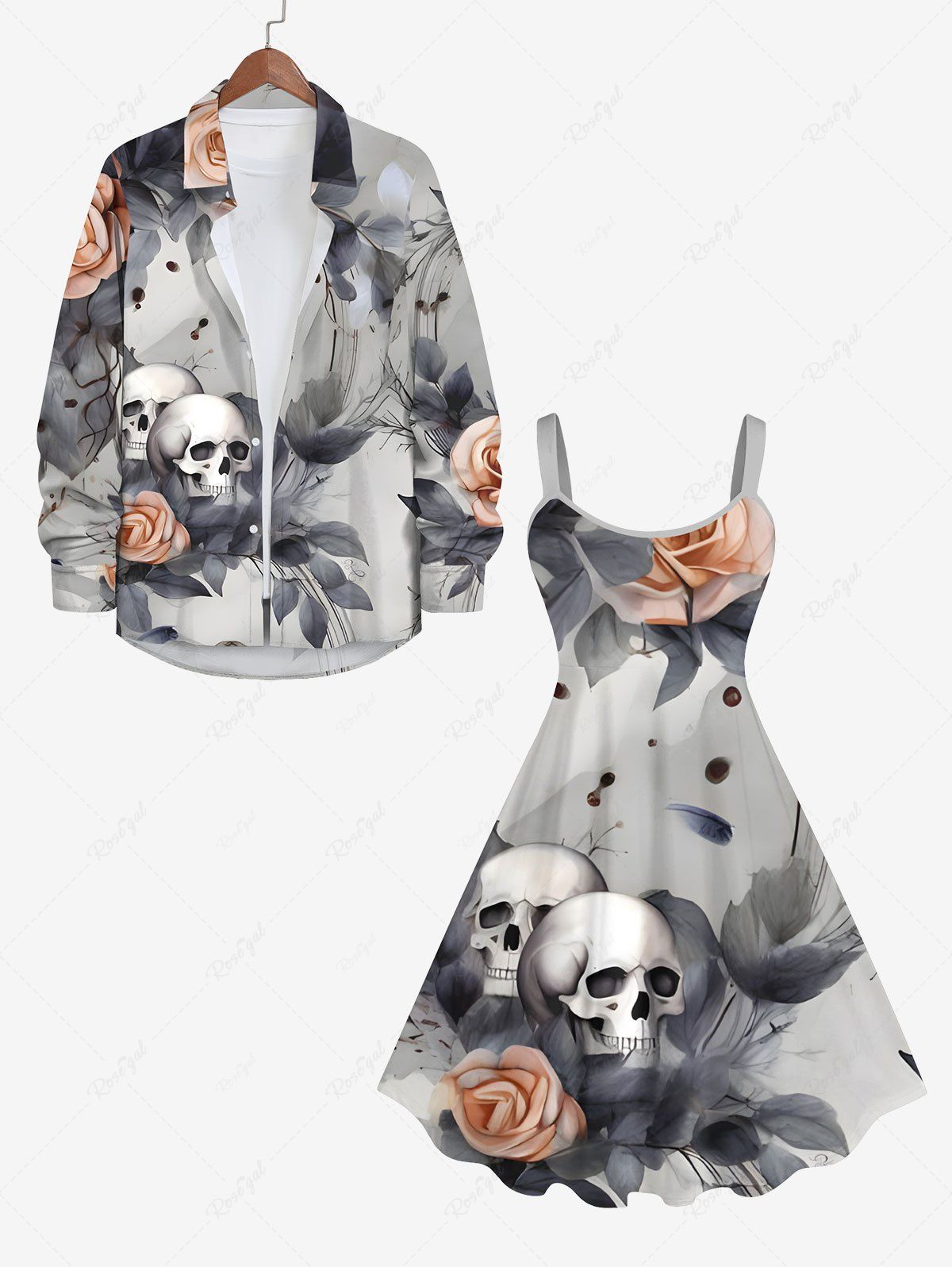 Halloween Costume Rose Flower Skulls Print Plus Size Matching Outfit For Couples