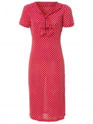 Vintage Slash Neck Polka Dot Print Bowknot Design 3/4 Sleeve Dress For Women