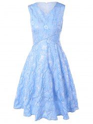 Flower Lace Insert Mock Button Long Sleeve Vintage Dress