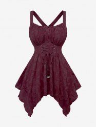 Plus Size Lace Up Grommets Ruffles Ruched Flowers Jacquard Crisscross Asymmetrical Tank TopColor: LIGHT PINKSize: 3X | US 22-24