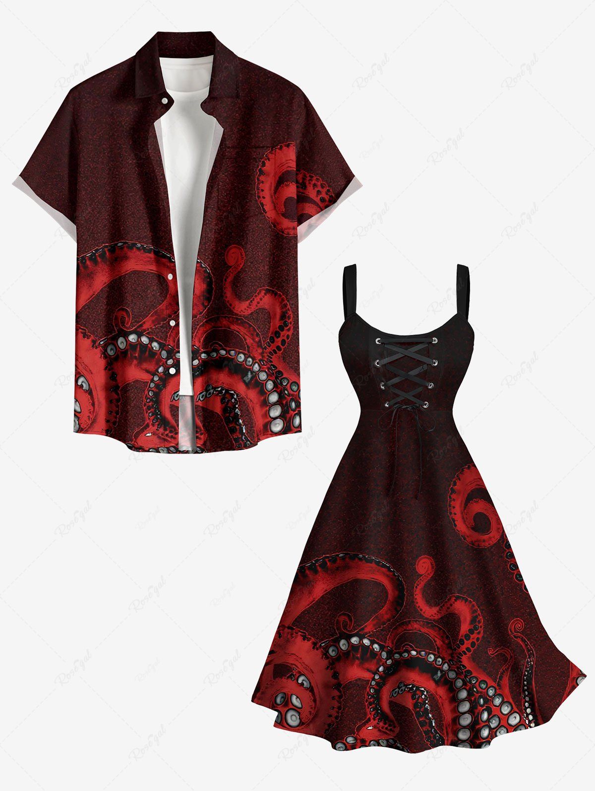 Octopus Print Plus Size Matching Hawaii Beach Outfit For Couples