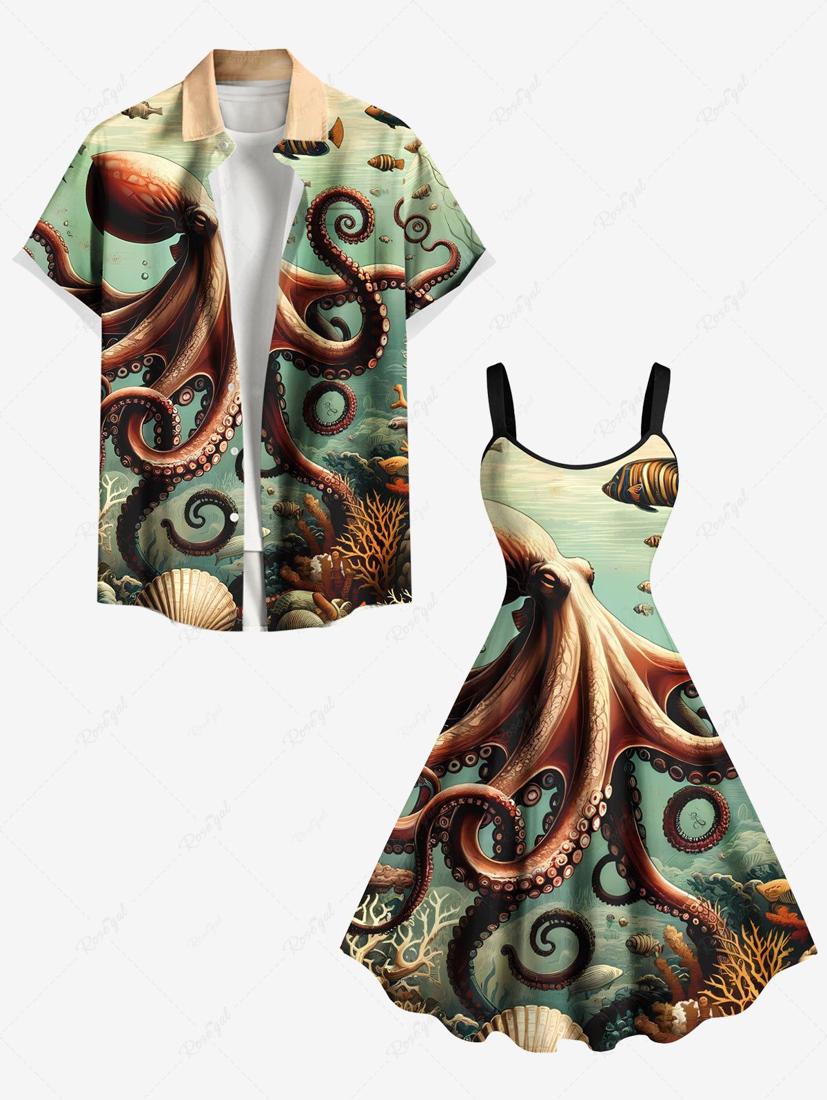 Octopus Shell Coral Fish Print Plus Size Matching Hawaii Sea Creatures Beach Outfit For Couples