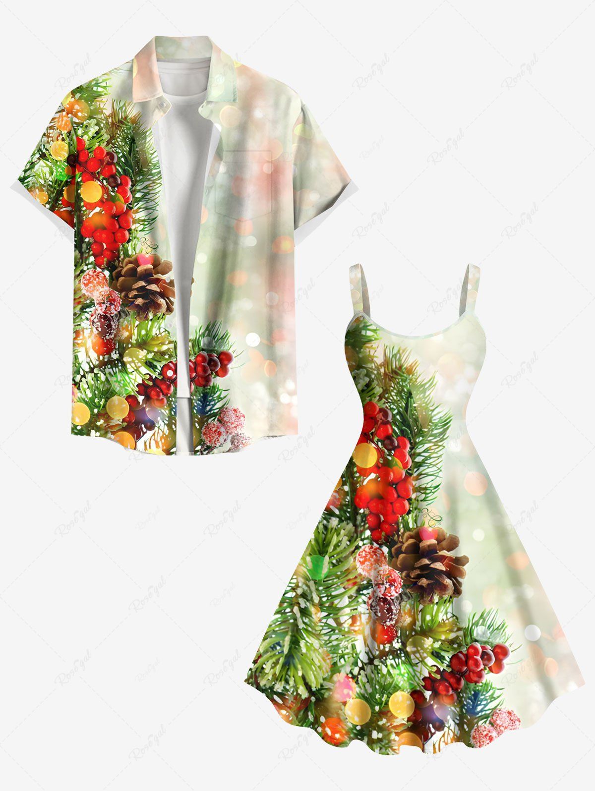 Party New Years Eve Fruit Pine Cones Leaf Print Plus Size Matching Outfit For Couples