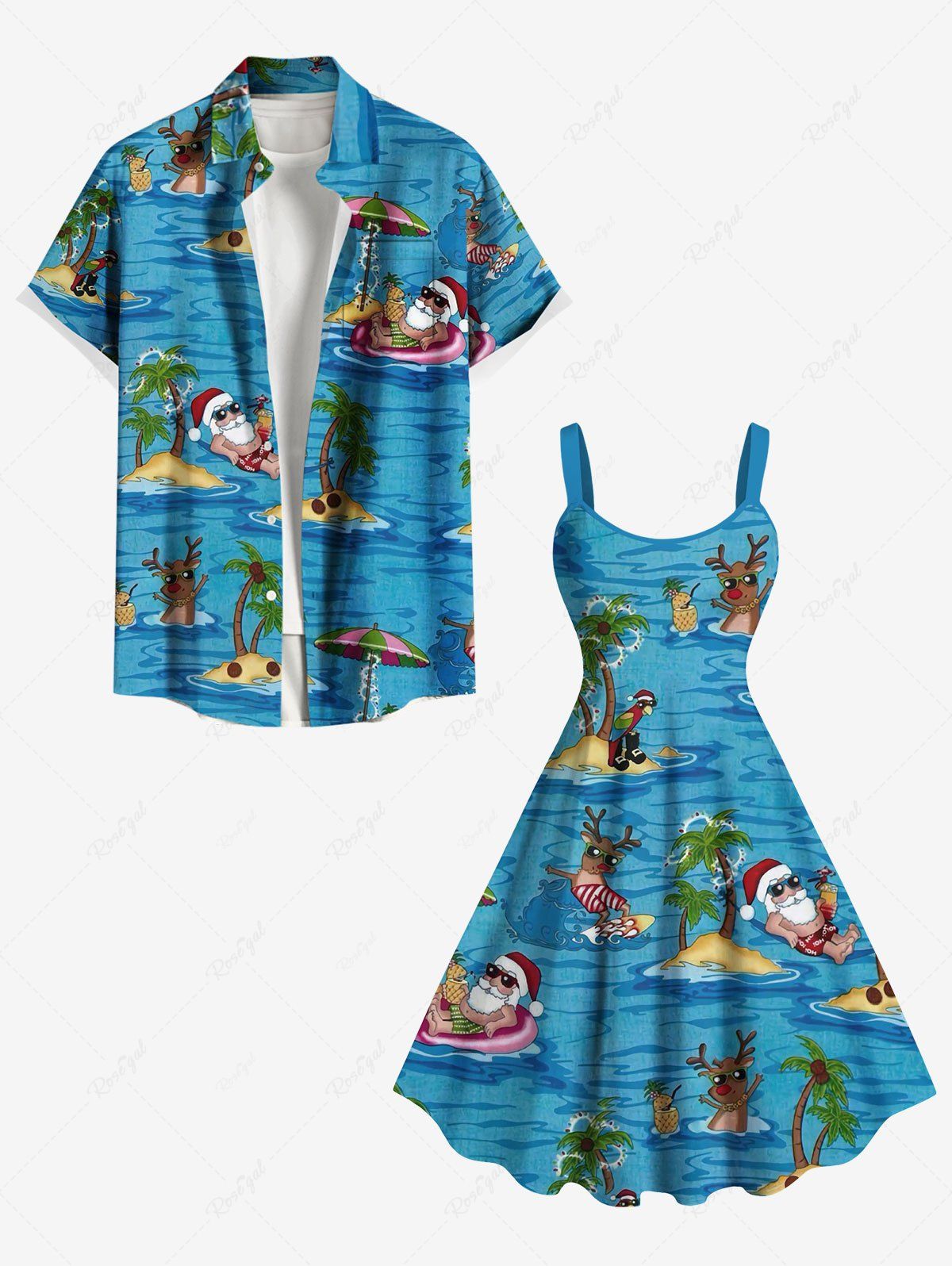Christmas Hat Elk Santa Claus Coconut Tree Seascape Print Plus Size Matching Hawaii Beach Outfit For Couples
