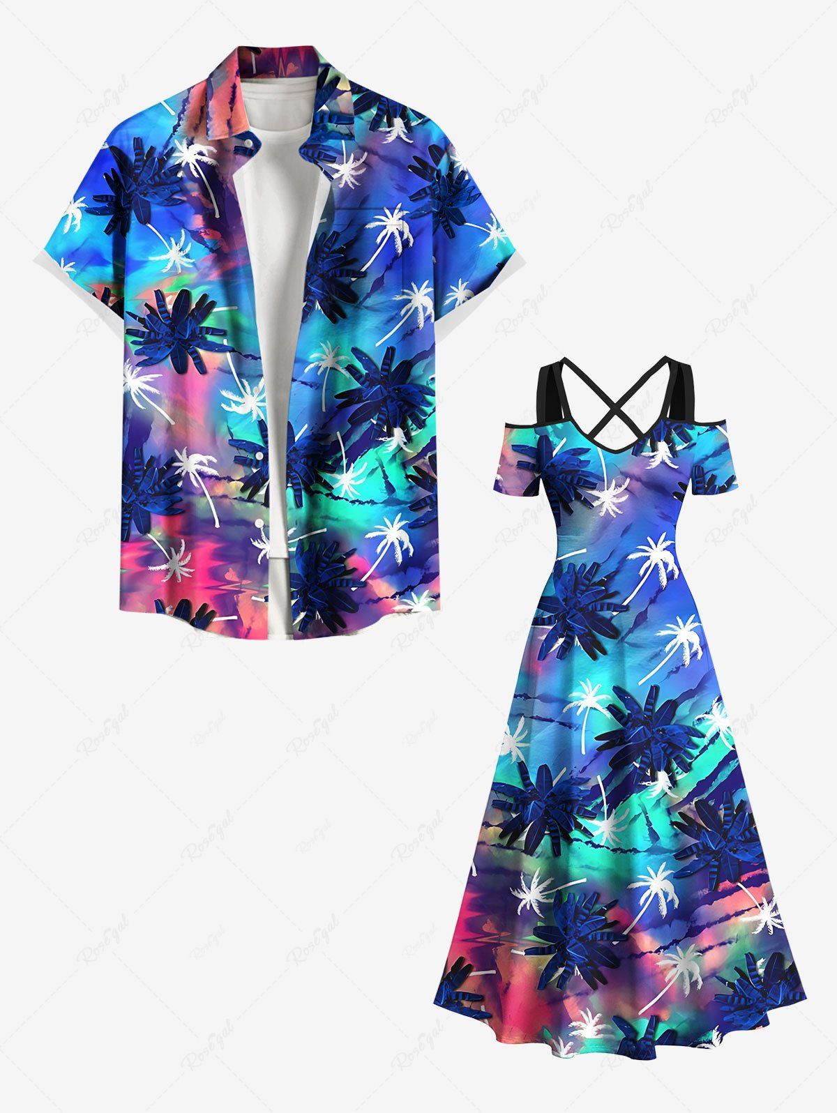Coconut Tree Colorful Ombre Print Plus Size Matching Hawaii Beach Outfit For Couples